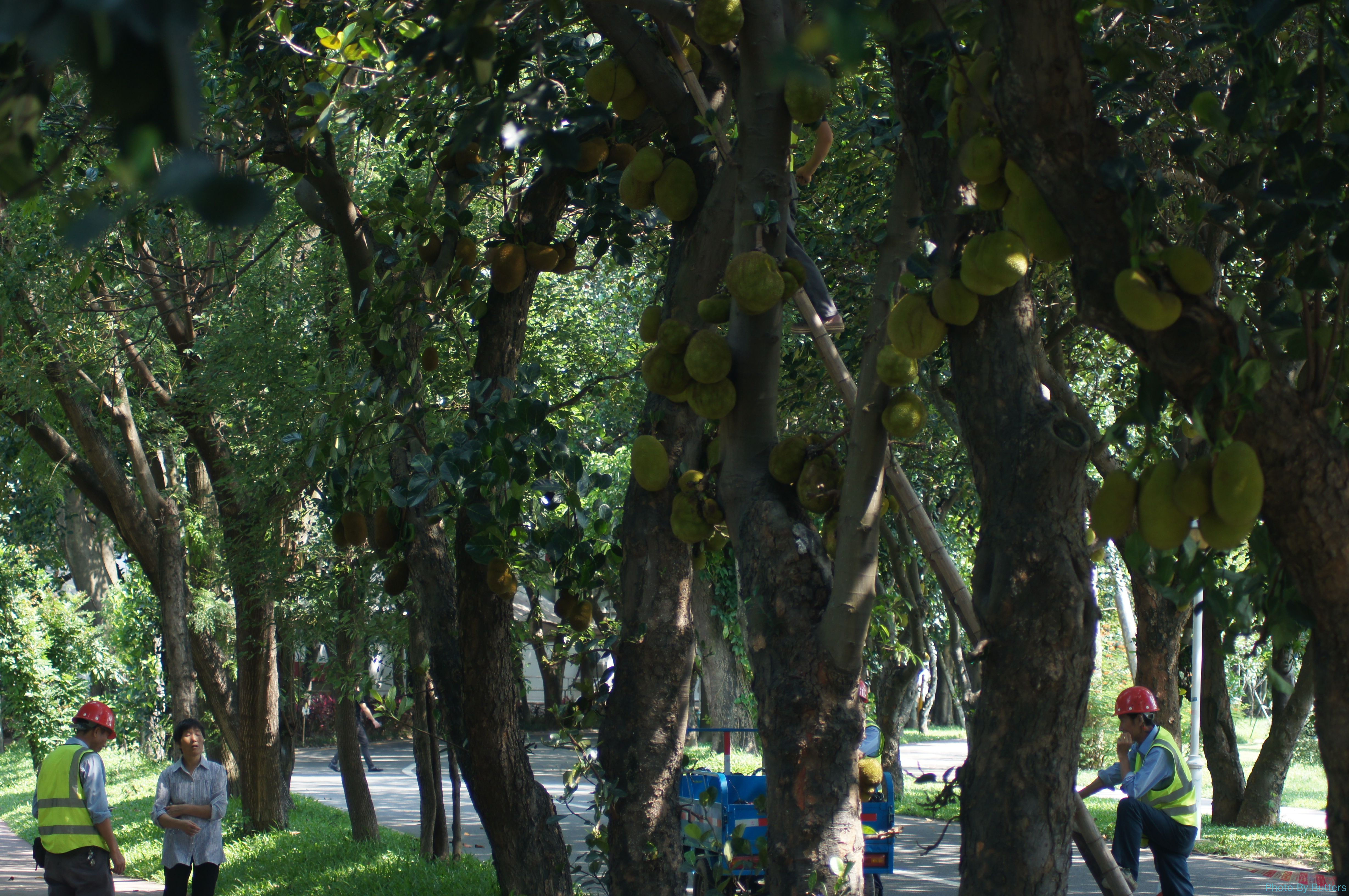 I visit Shenzhen University in a weekend. I expected mostly modern buildings in a relatively newly built university. But the campus looks old and simple. The trees by the street are full of huge jackfruits. The staff have to climb the tree and fasten them by wires, otherwise they will fall down and hurt passing pedestrians. The botanic garden is delicate but doesn’t stand out in the campus, because the whole campus looks like a botanic garden.