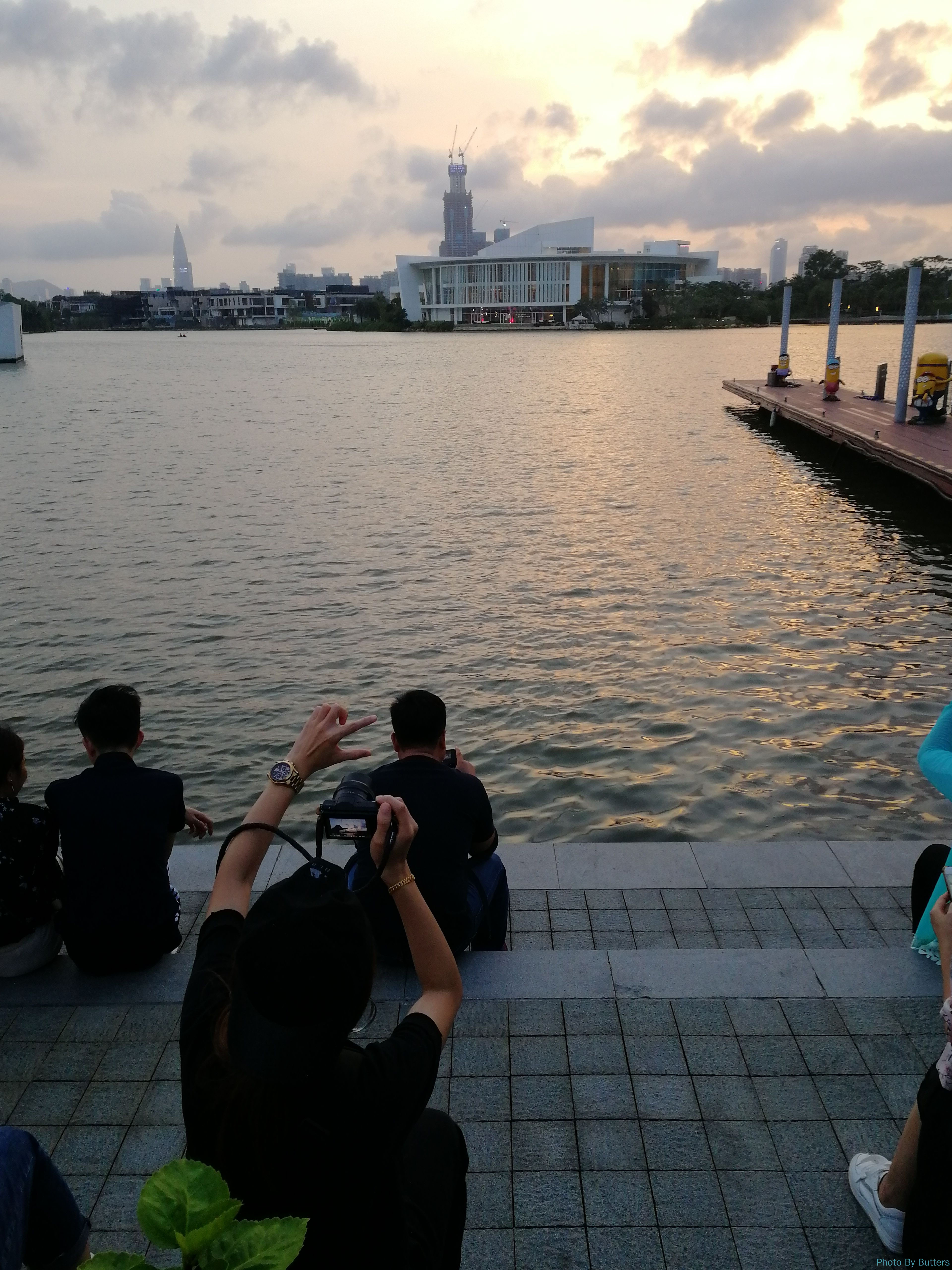 A lot of birds live in the Wenshan Lake. There is a wooden shed in the water for the ducks, whose roof is made in solar panels. Maybe ducks like hot showers too. Someone is walking a rabbit in the lawn, getting all the attention of the kids.
