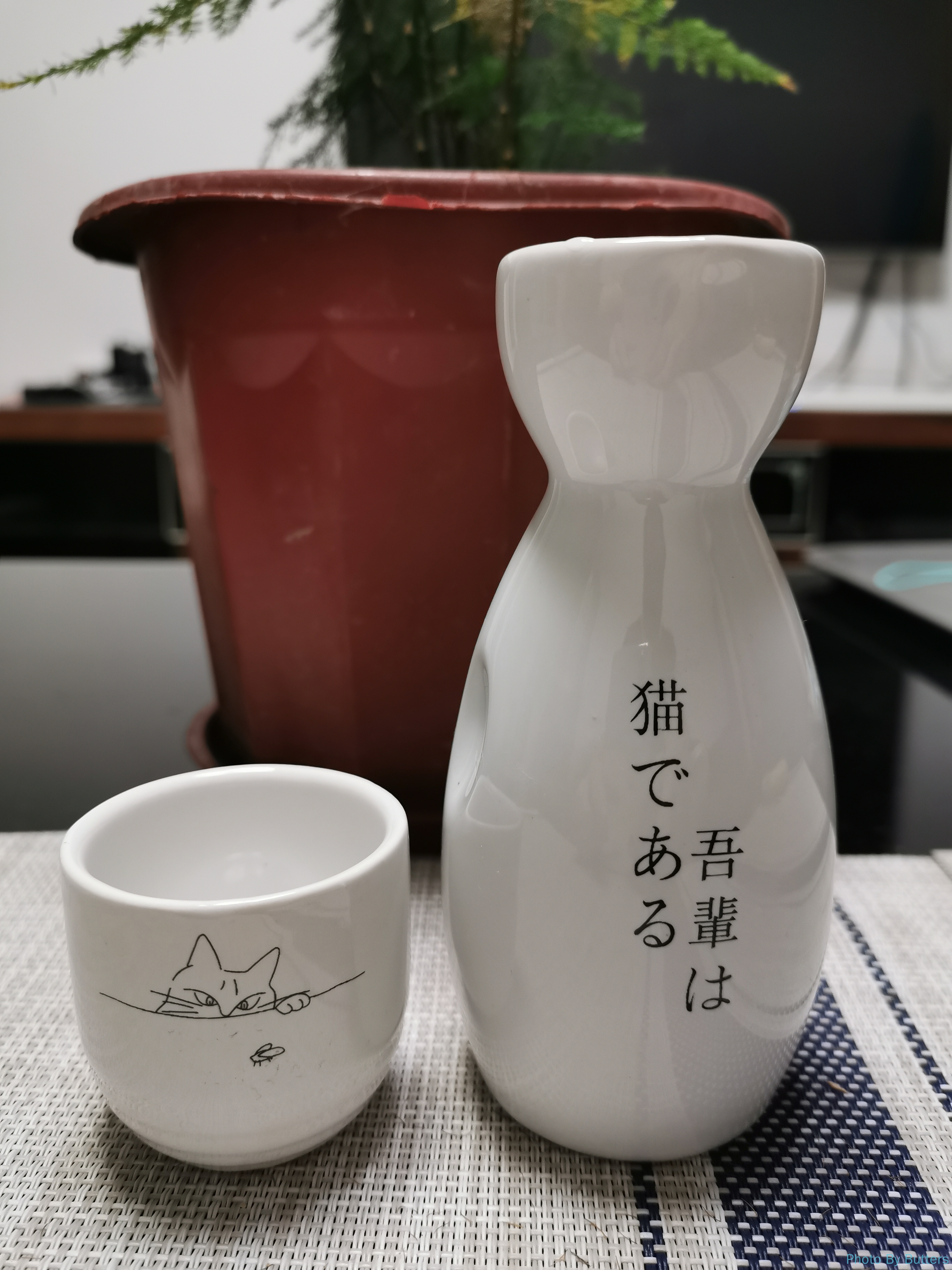 Attracted by the cat theme, I buy the book of “I Am a Cat”, the tote bag and a sake set. When I checkout, the clerk reminds me that “The book is different than the pop fictions; it is full of implicit philosophy and needs slow reading. And the sake set can be used as a vase.” Apparently I look like a person who doesn’t drink.