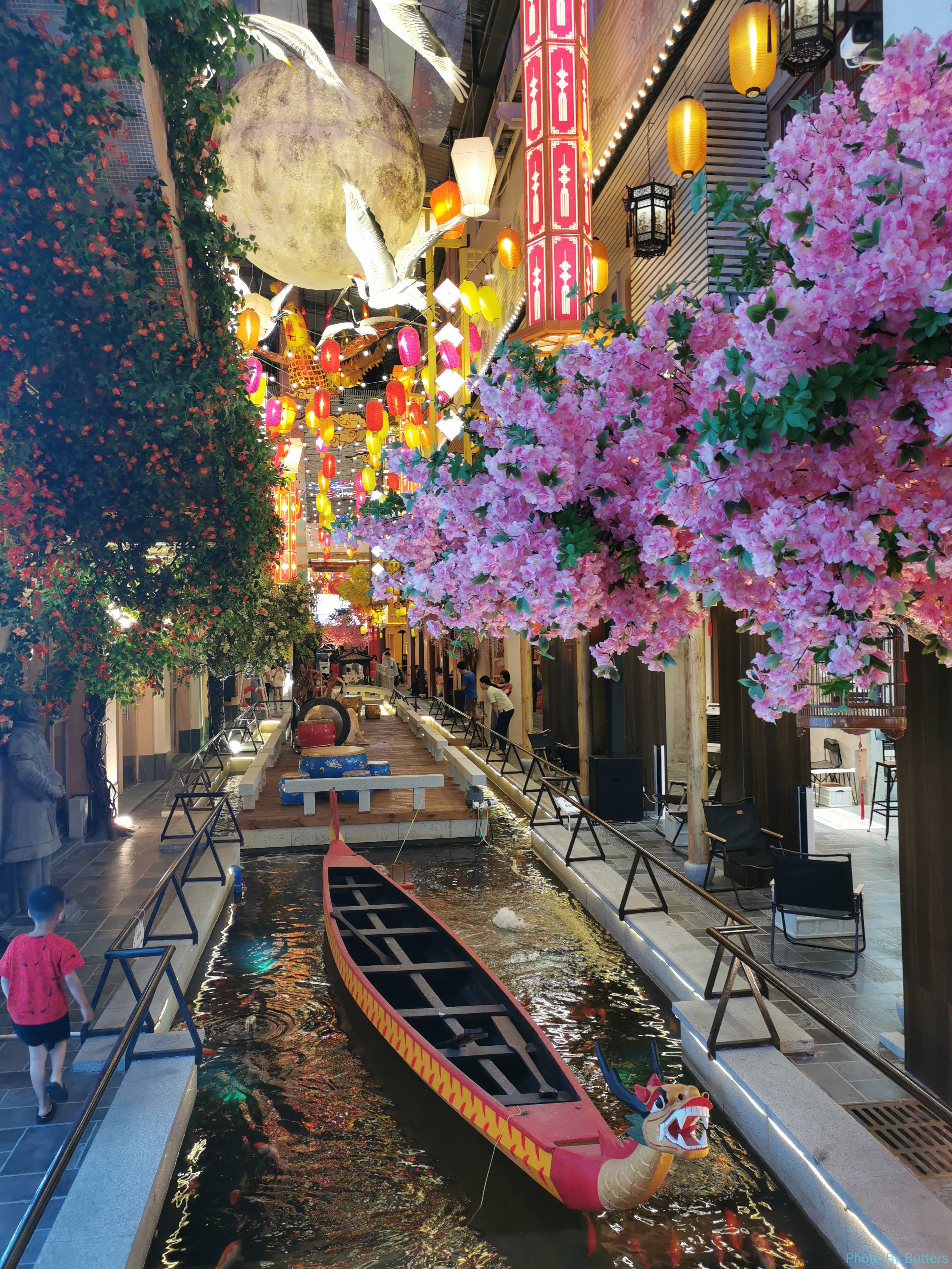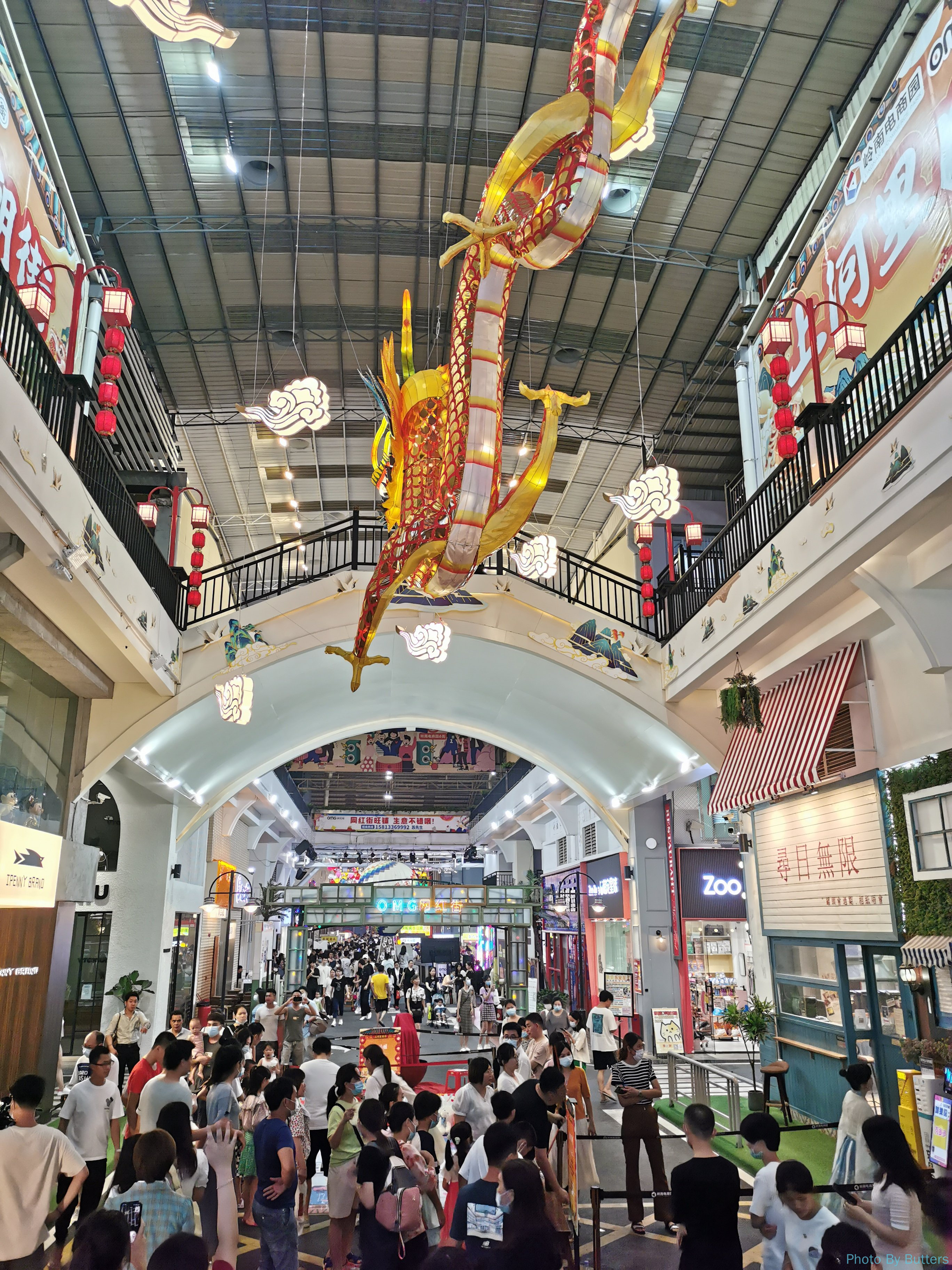The street is actually an indoor mall, while decorated into different styles of streets. The street in traditional chinese style was well developped and more lively, with shows and games catering to the children. The street in western style was quite; some shops were still under construction, and some others were empty but with some interesting signboards in English. Diao said one visit would be enough.