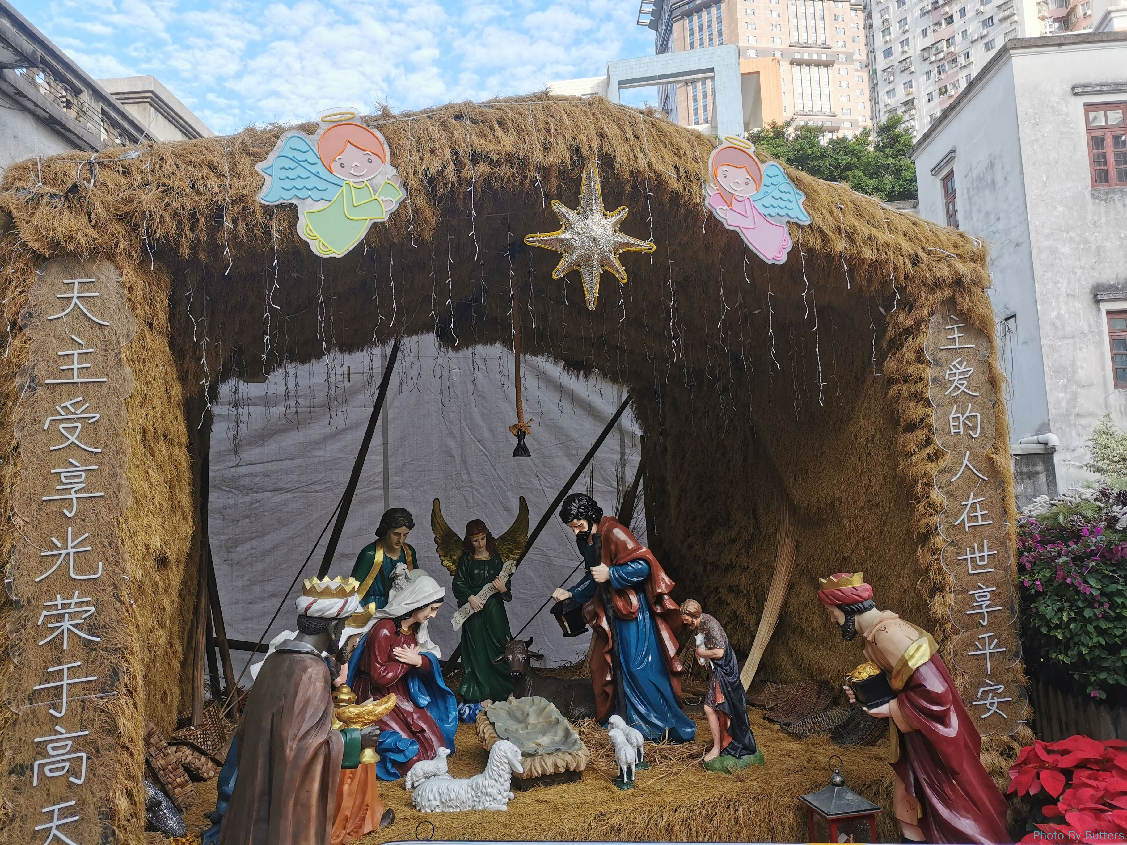 There was about one week till Christmas. A massive Christmas tree stood in the courtyard, and a nativity scene was set up in the back. A lady with a hint of northeastern accent was telling Bible stories to the visitors around the stable. she talked on and on, and after a long time I finally caught a gap to ask her why Jesus was not in the stable. She answered it was until the Christmas eve when the baby Jesus would be brough here from the cathedral.