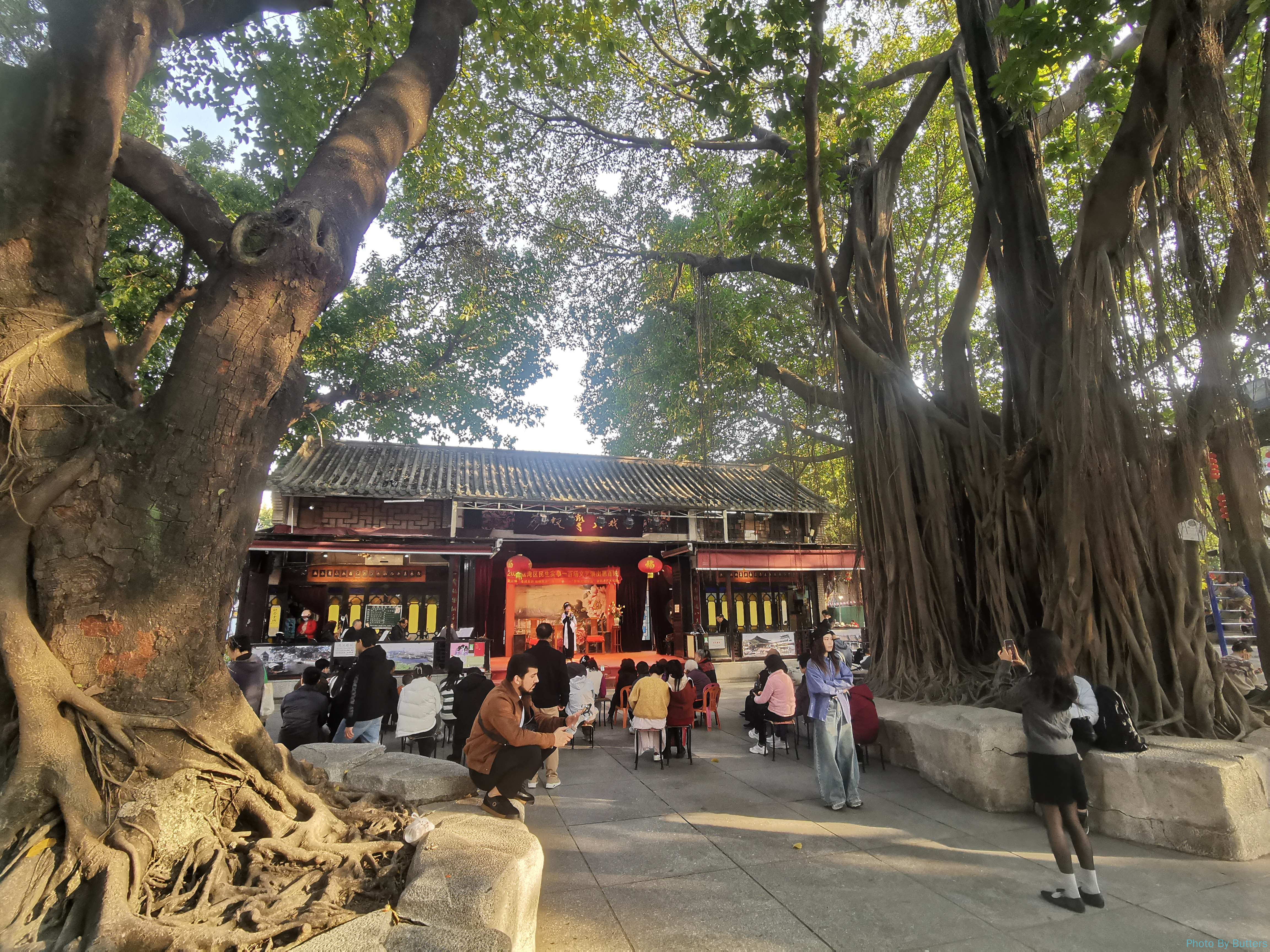 After the meal we walked in Liwanhu (Liwan Lake) Park. We were lucky to catch a Guangdong opera at Lizhiwan Opera Stage. It was close to the Chinese New Year so the little house of dragon-boat club was used for vendors writing new year couplets (chunlian).