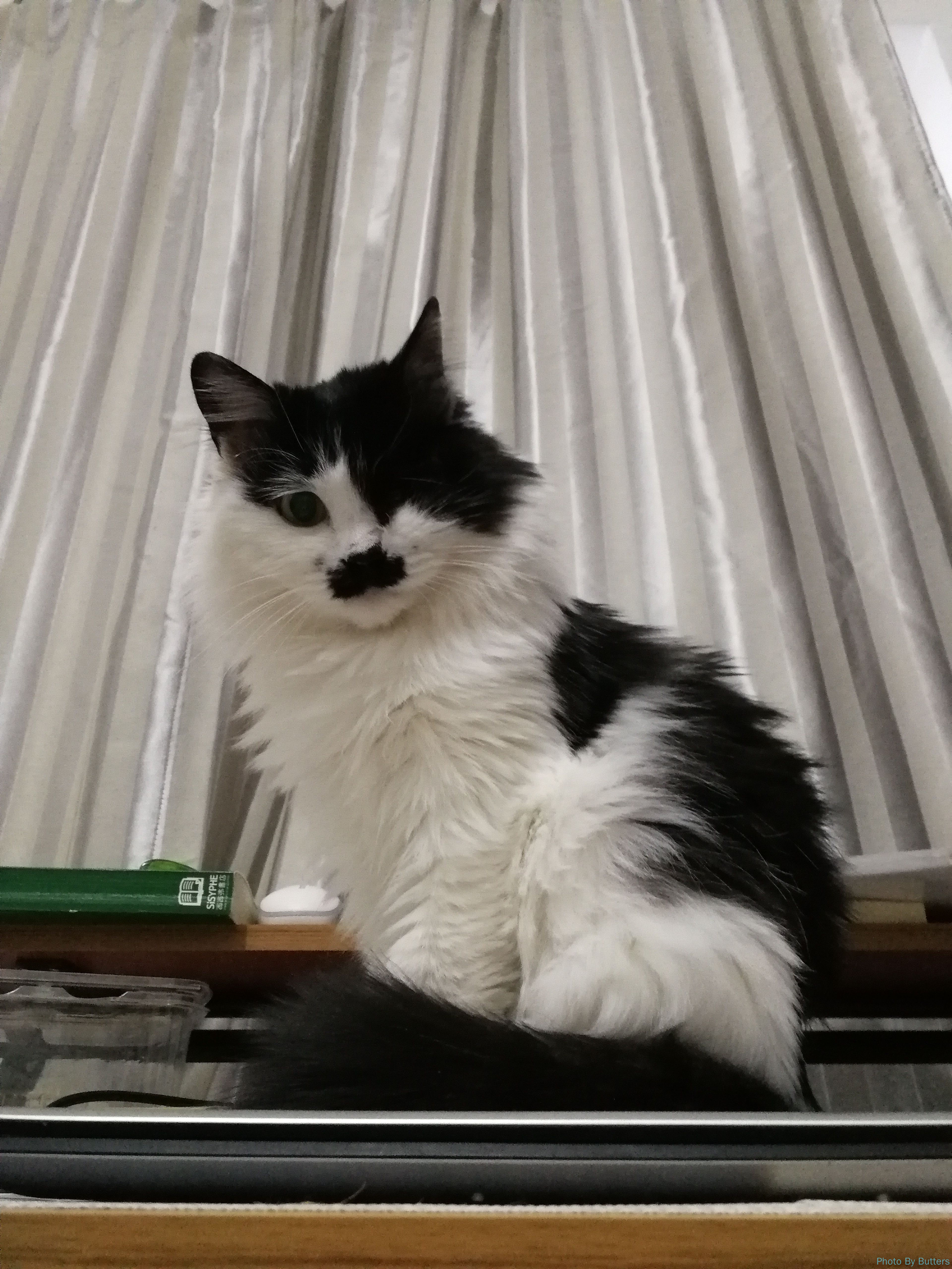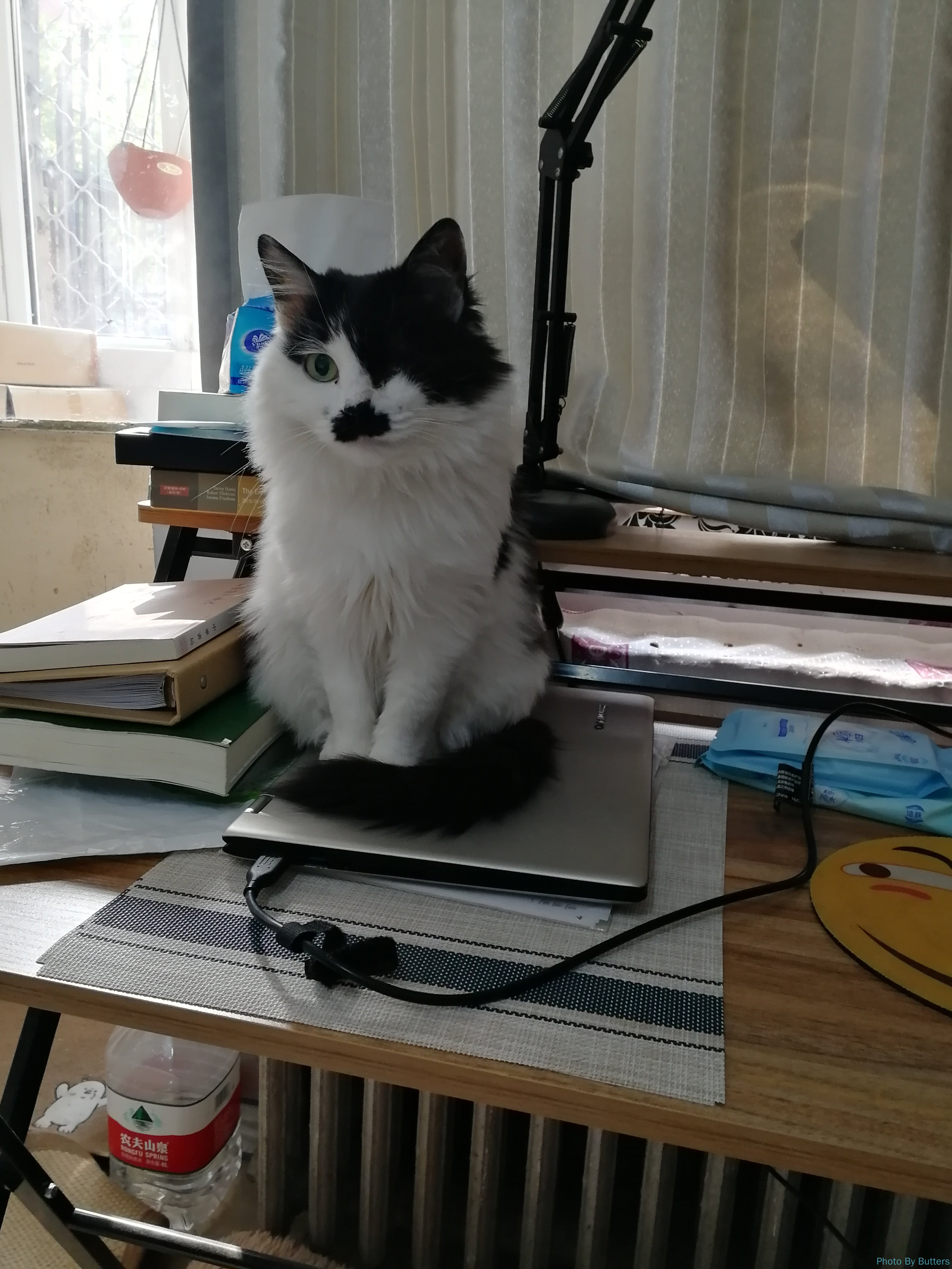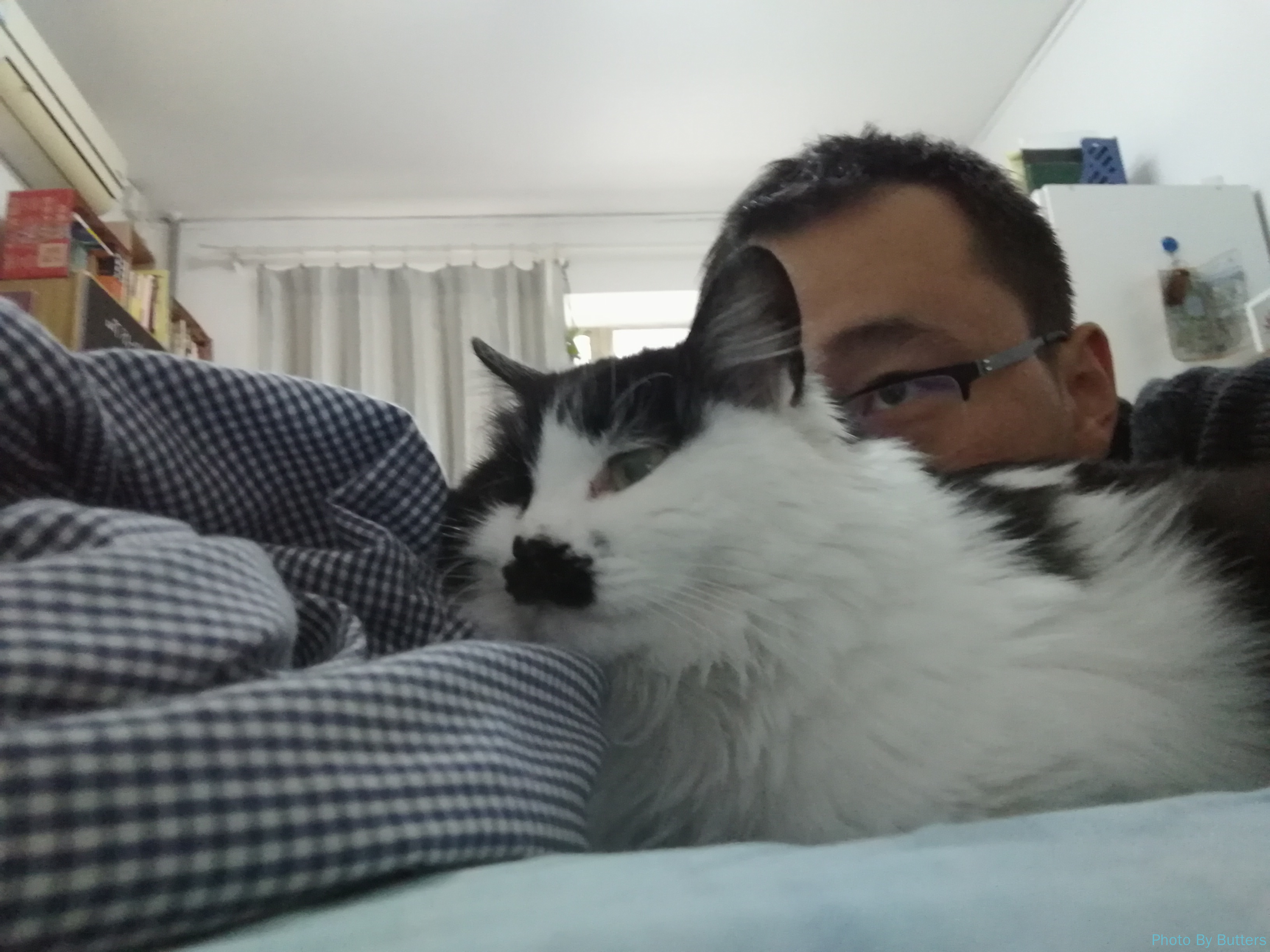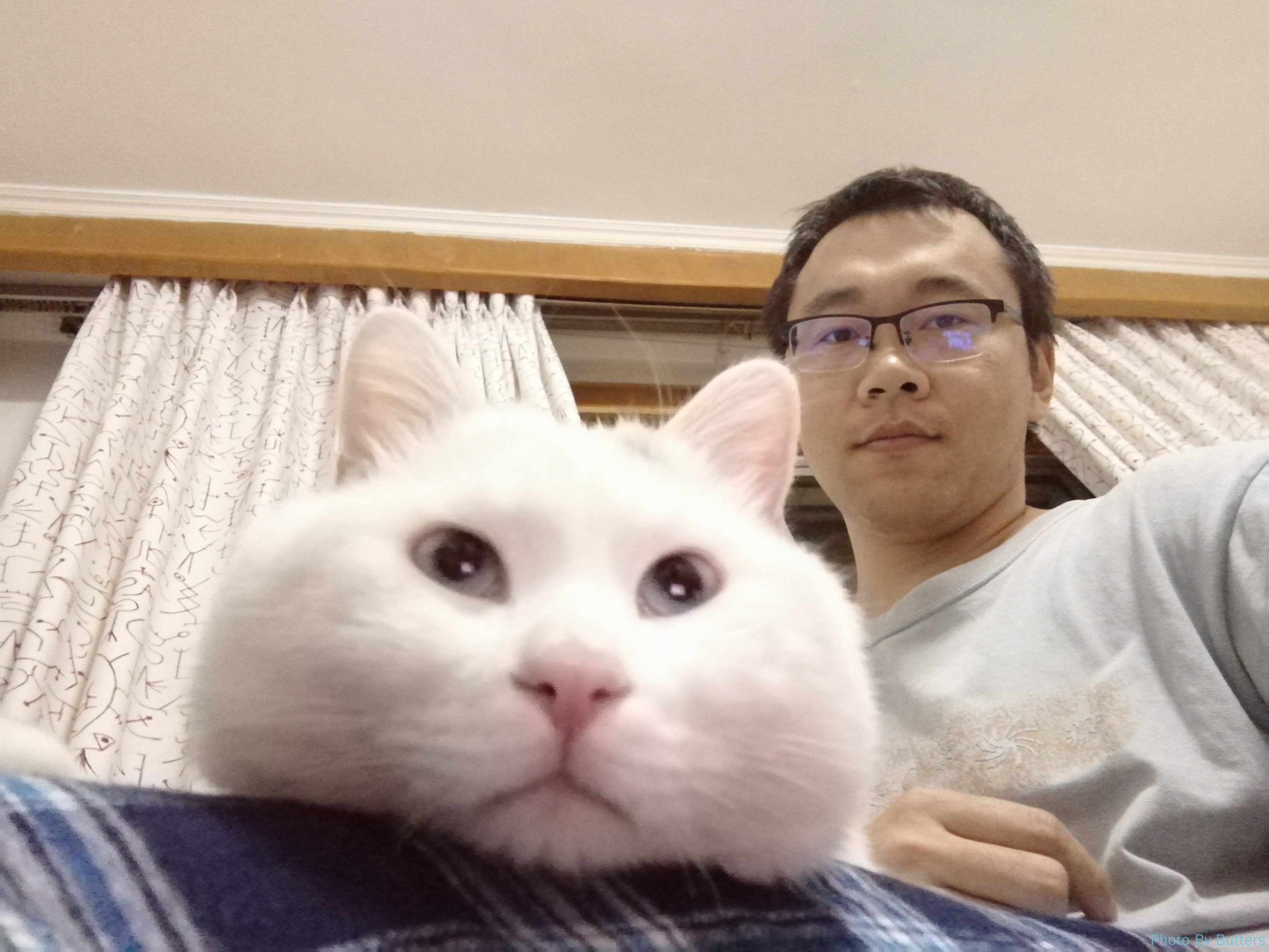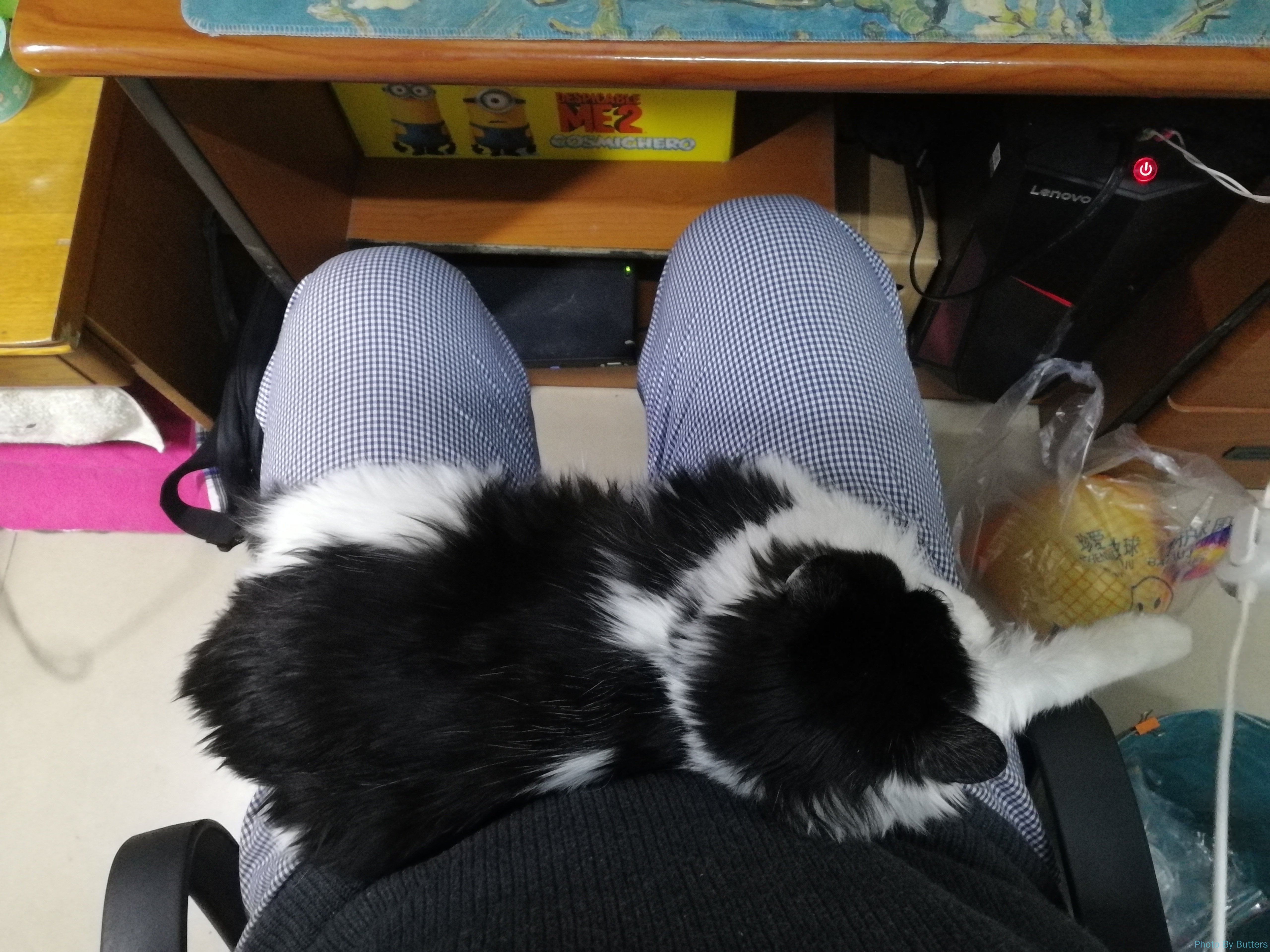 来暖气之前,Eva 与我非常亲近,新学会了趴腿上的把戏。这天先伸出左腿趴着,不一会儿可能快麻了,又换出右腿趴着。