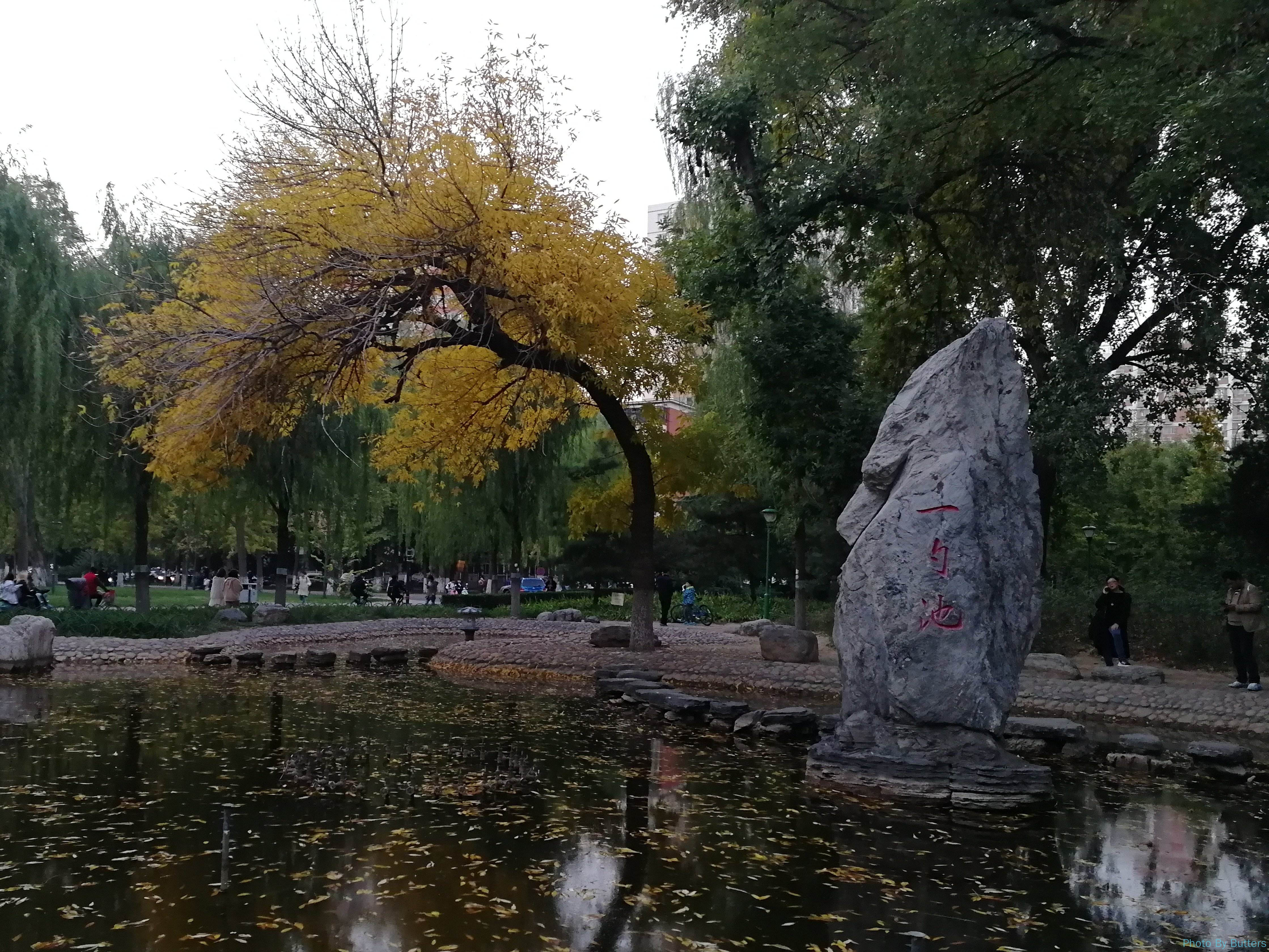 十月的天气还可以,没少去圆明园跑步。有一次去晚了,跑起来已经黑天了。