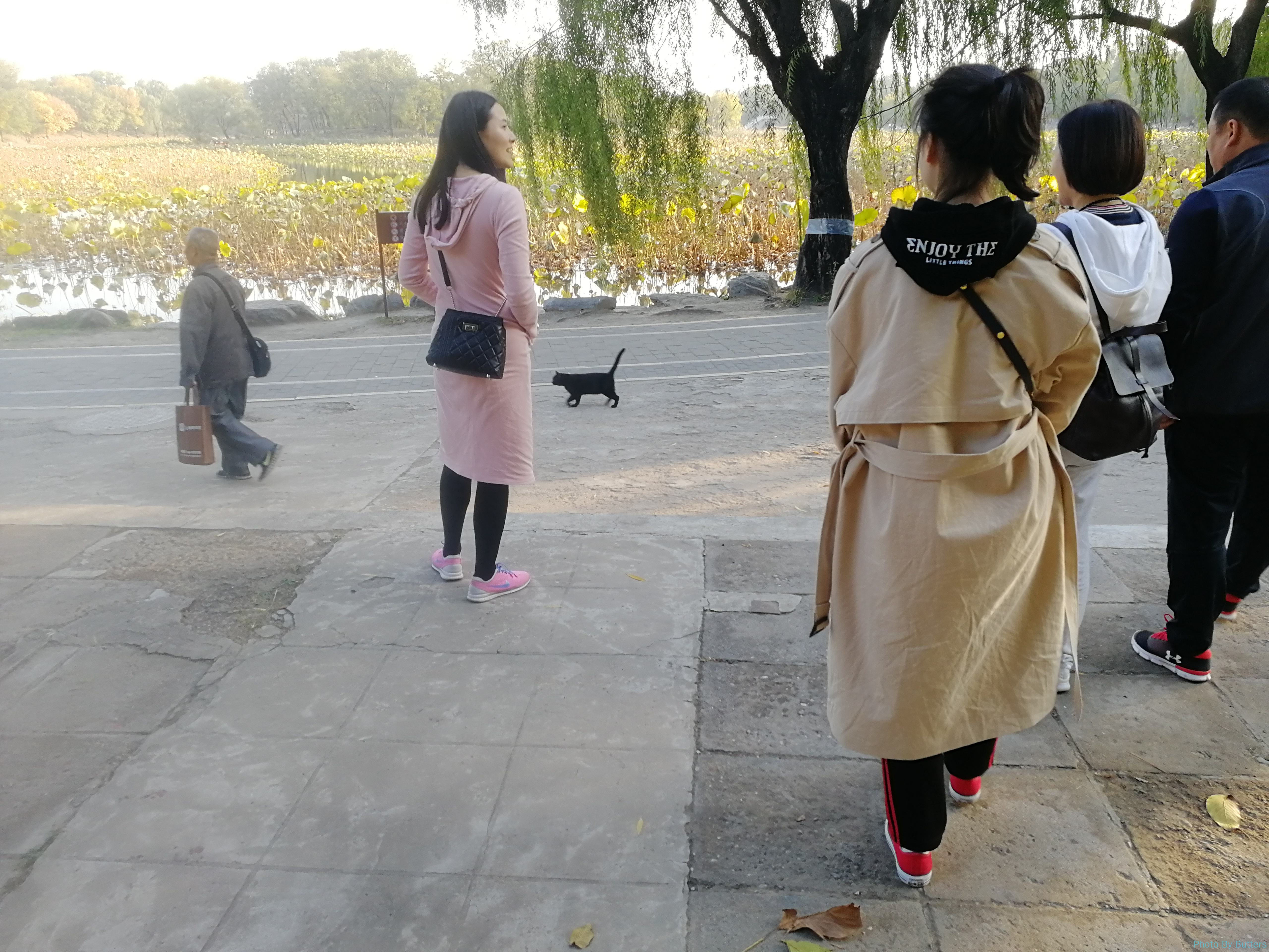 在圆明园跑步有时会遇到这只黑猫。