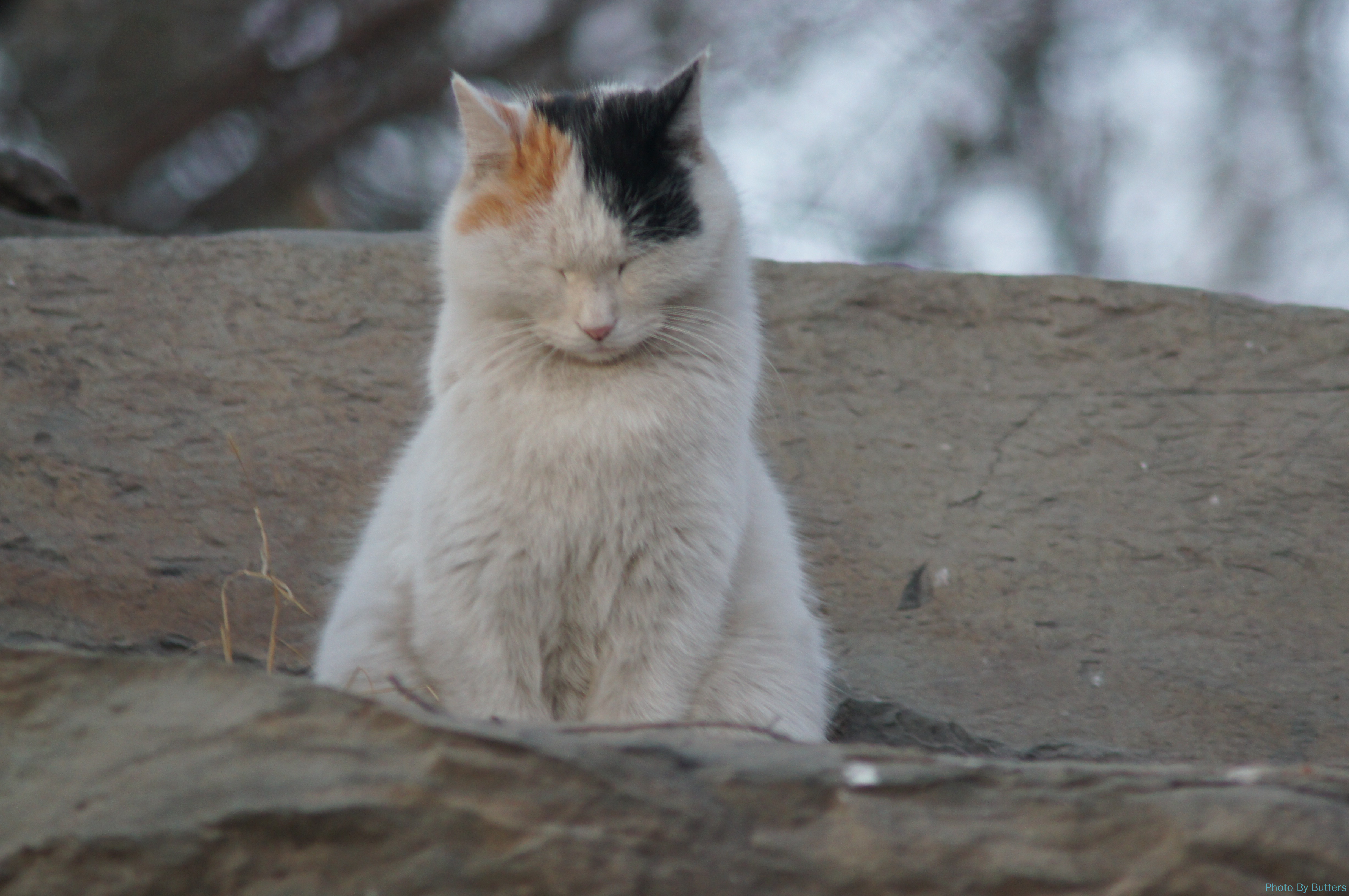 我遇到了一个同样来走路锻炼顺便喂猫的阿姨,她给我介绍了公园里还有几处猫集中的地方。这里的猫没有故宫御猫的关注度,也没有那么多人来喂,冬天很难熬过去,而且还有野狗会咬它们。