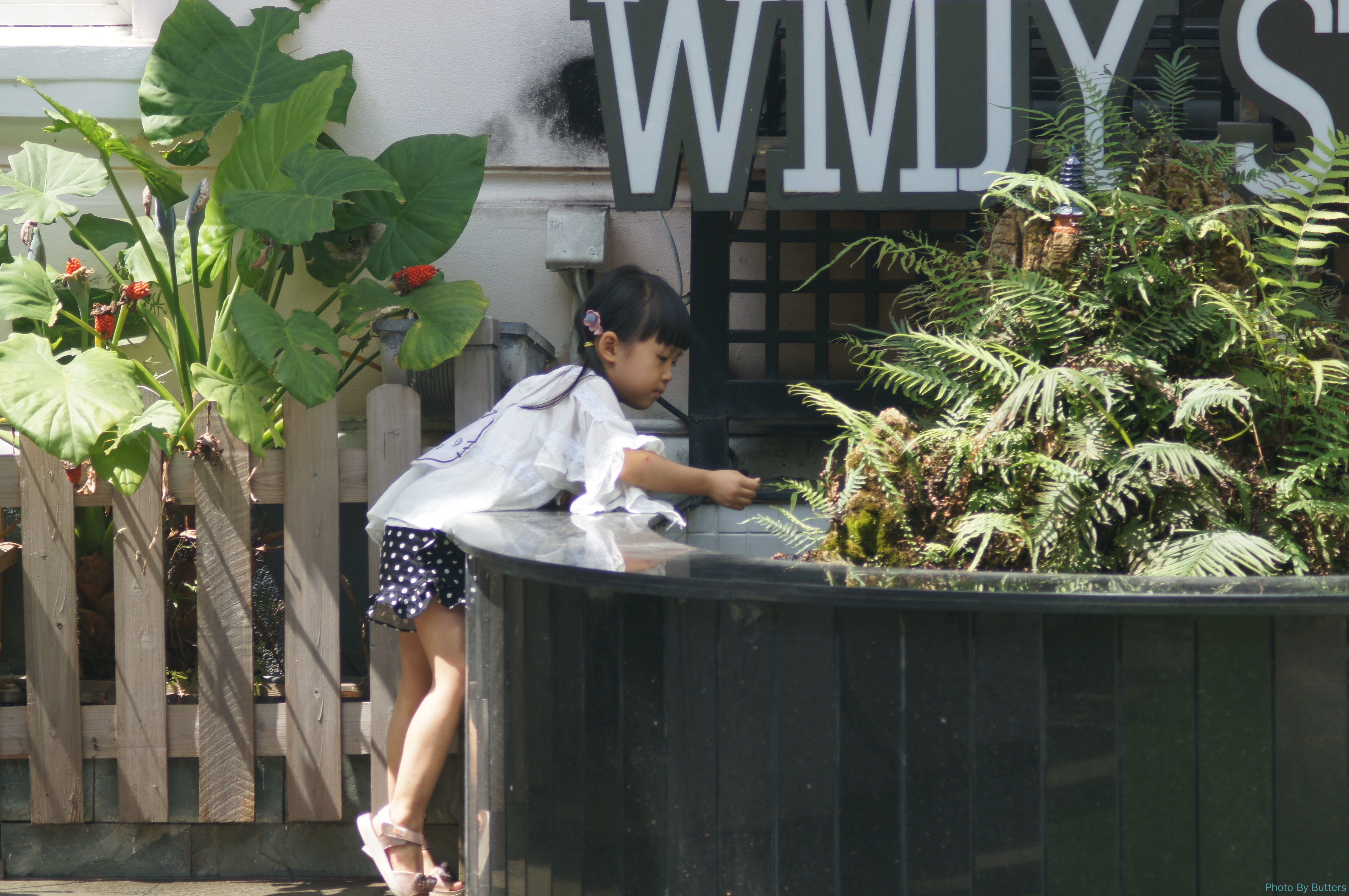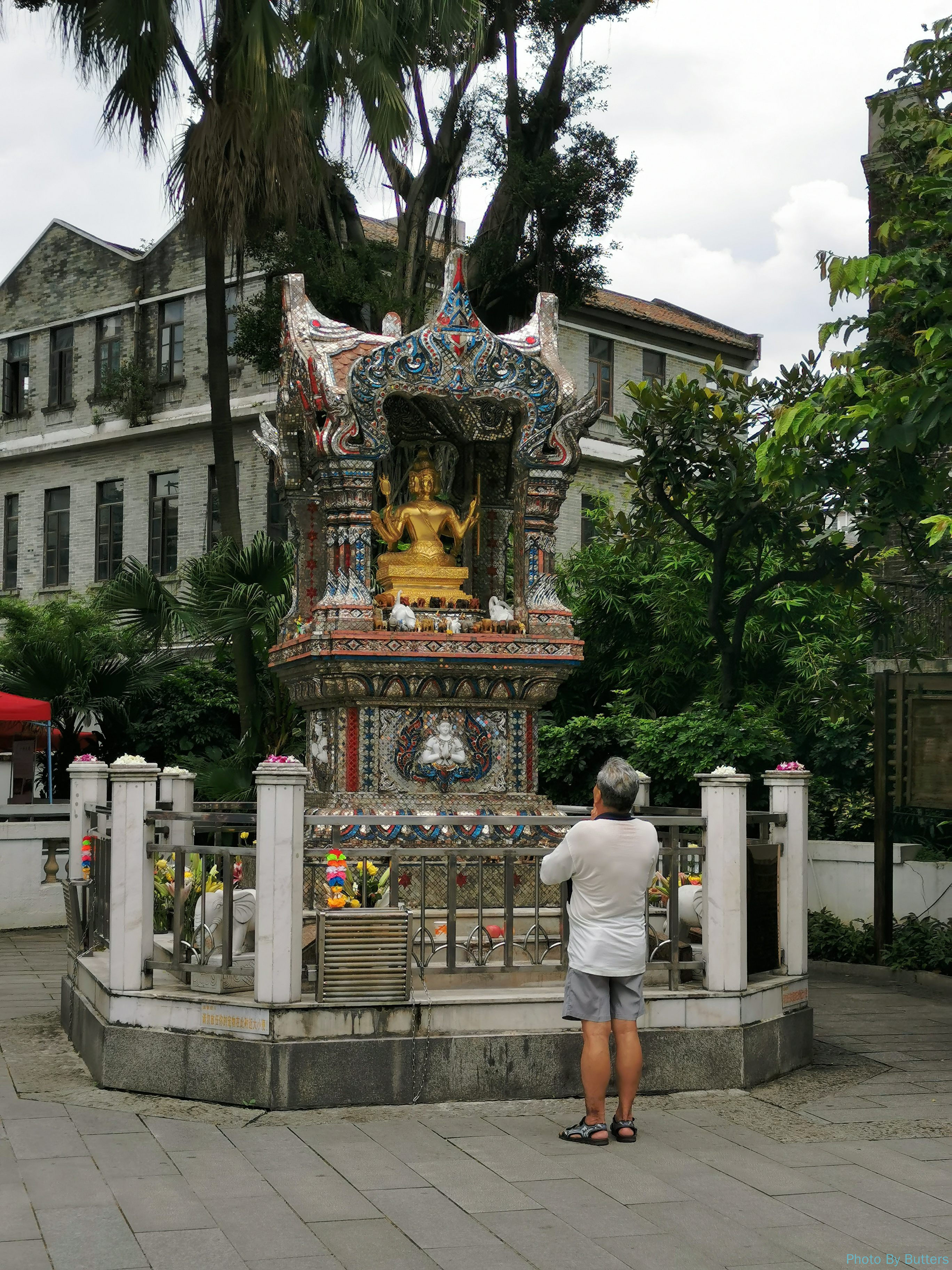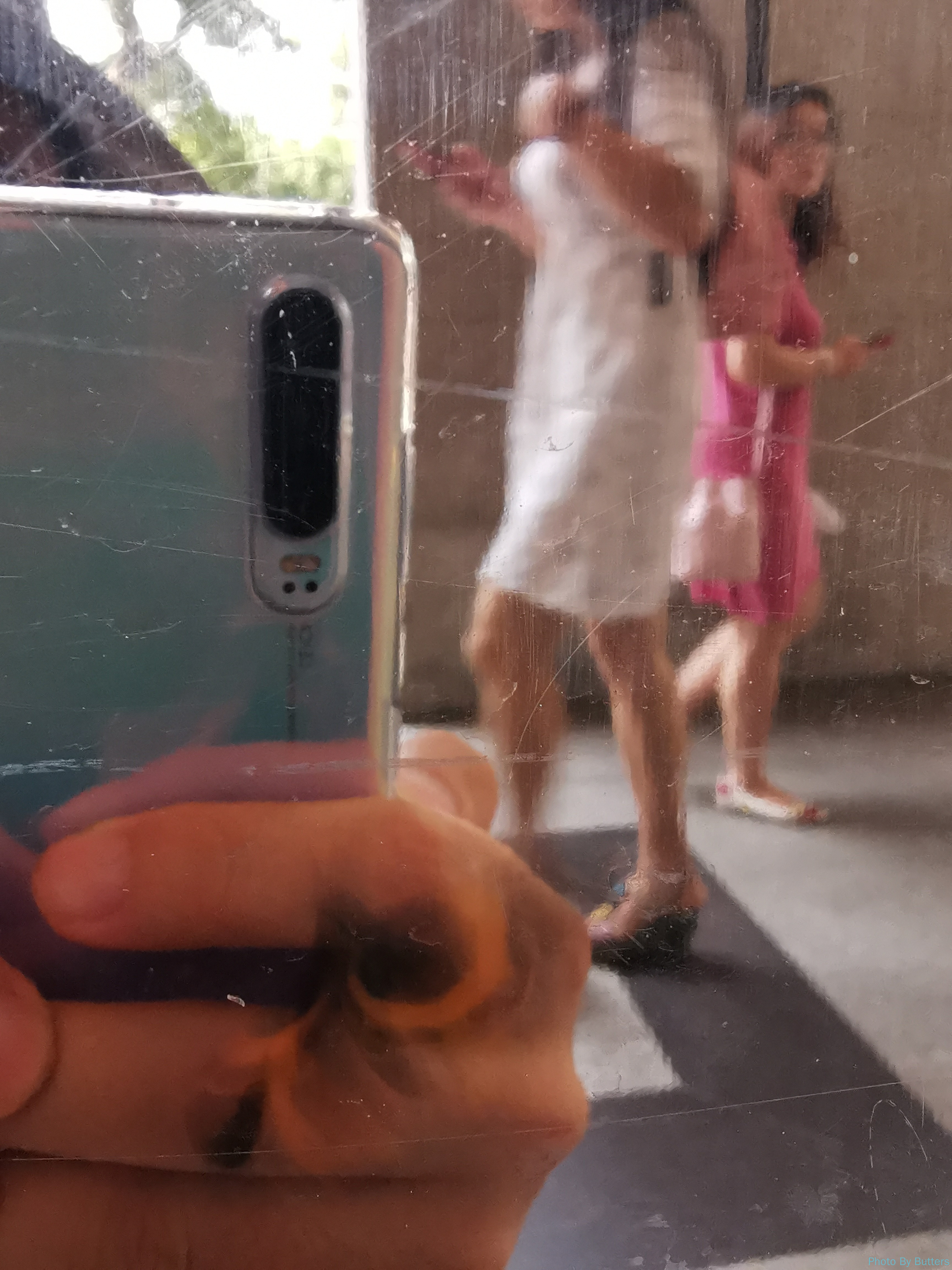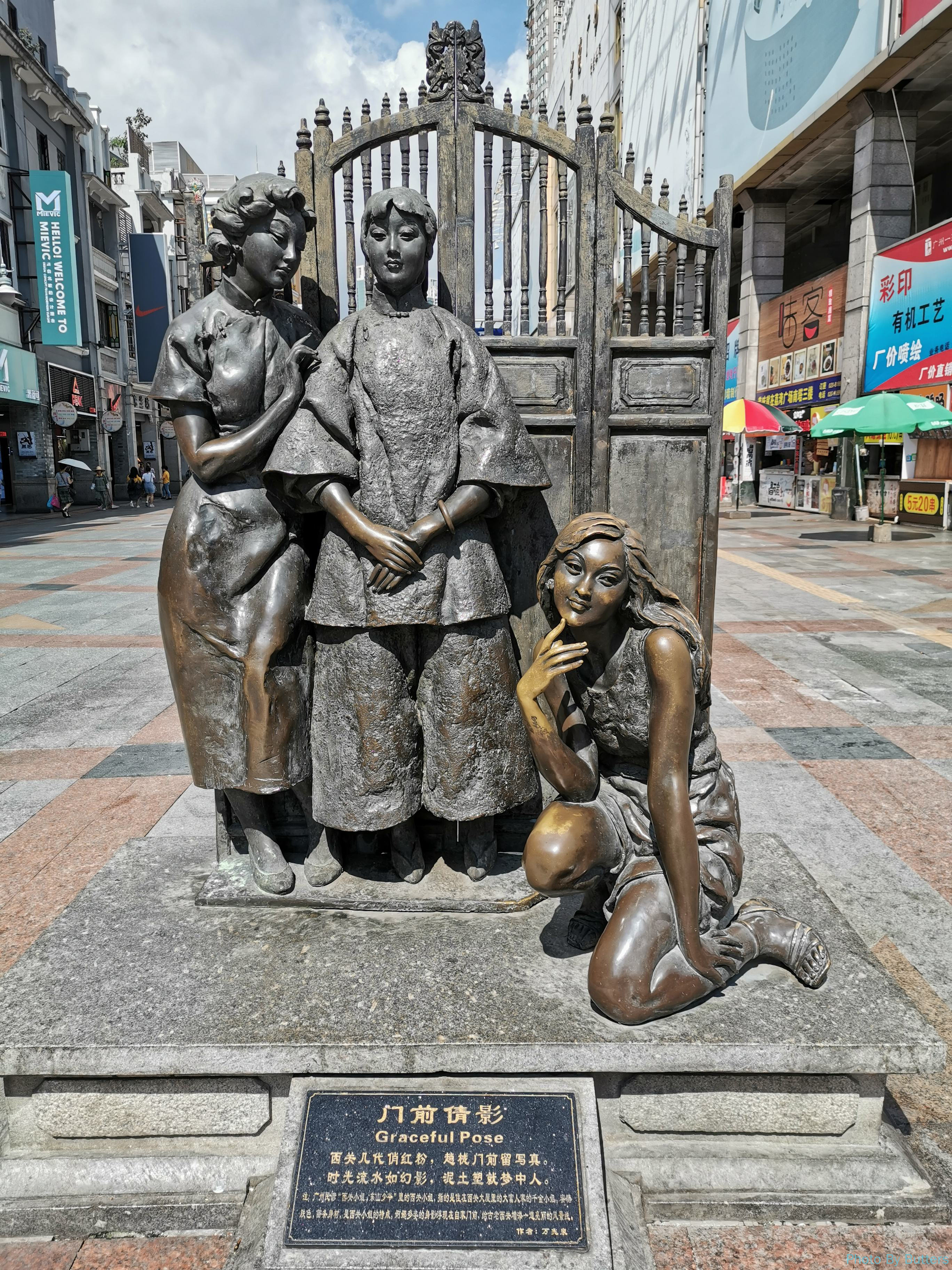 刚进入沙面,看到一只大蝴蝶落在墙上。拍了几张照片它突然飞走了,只剩下好奇的路人的倒影。