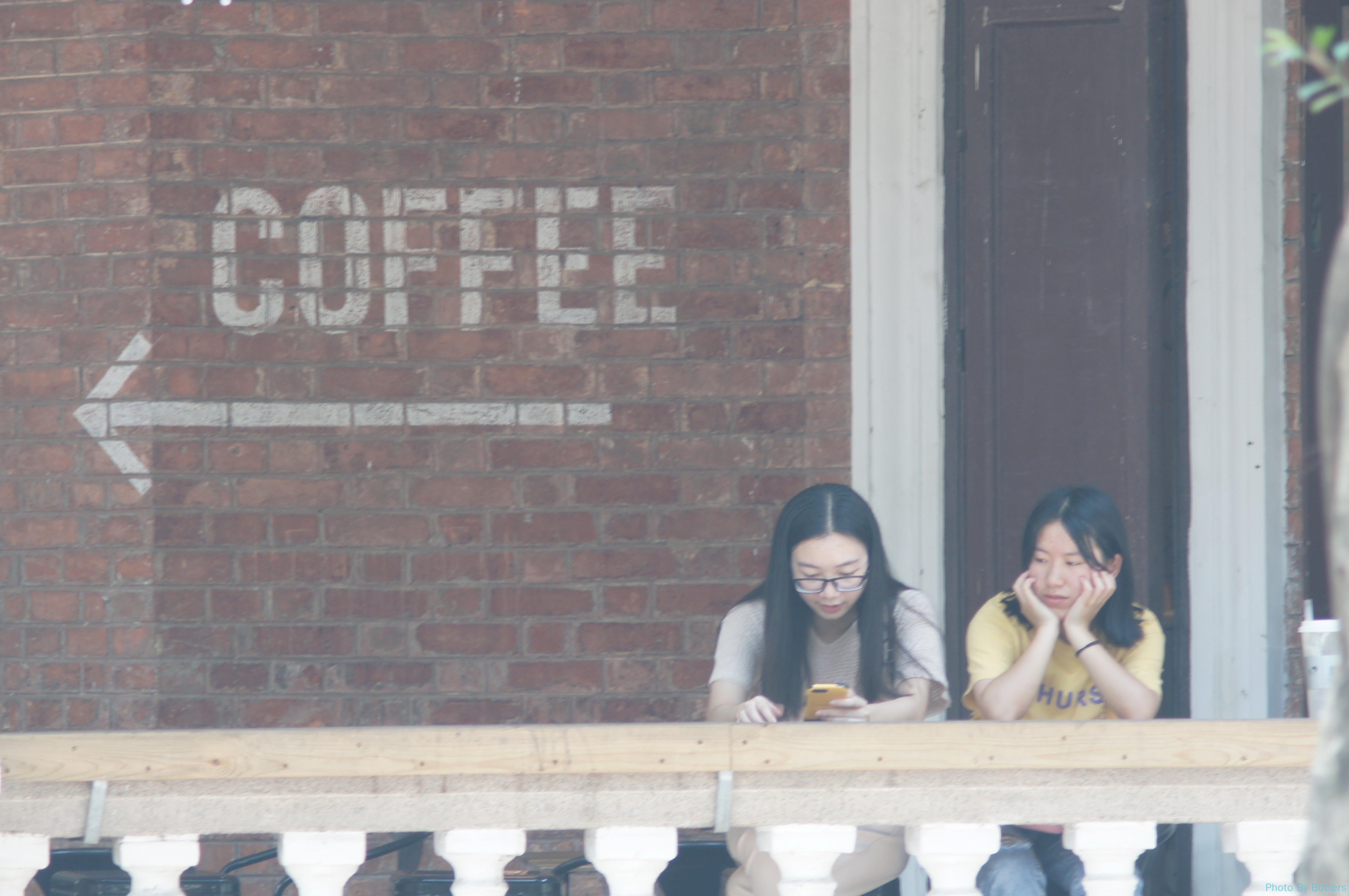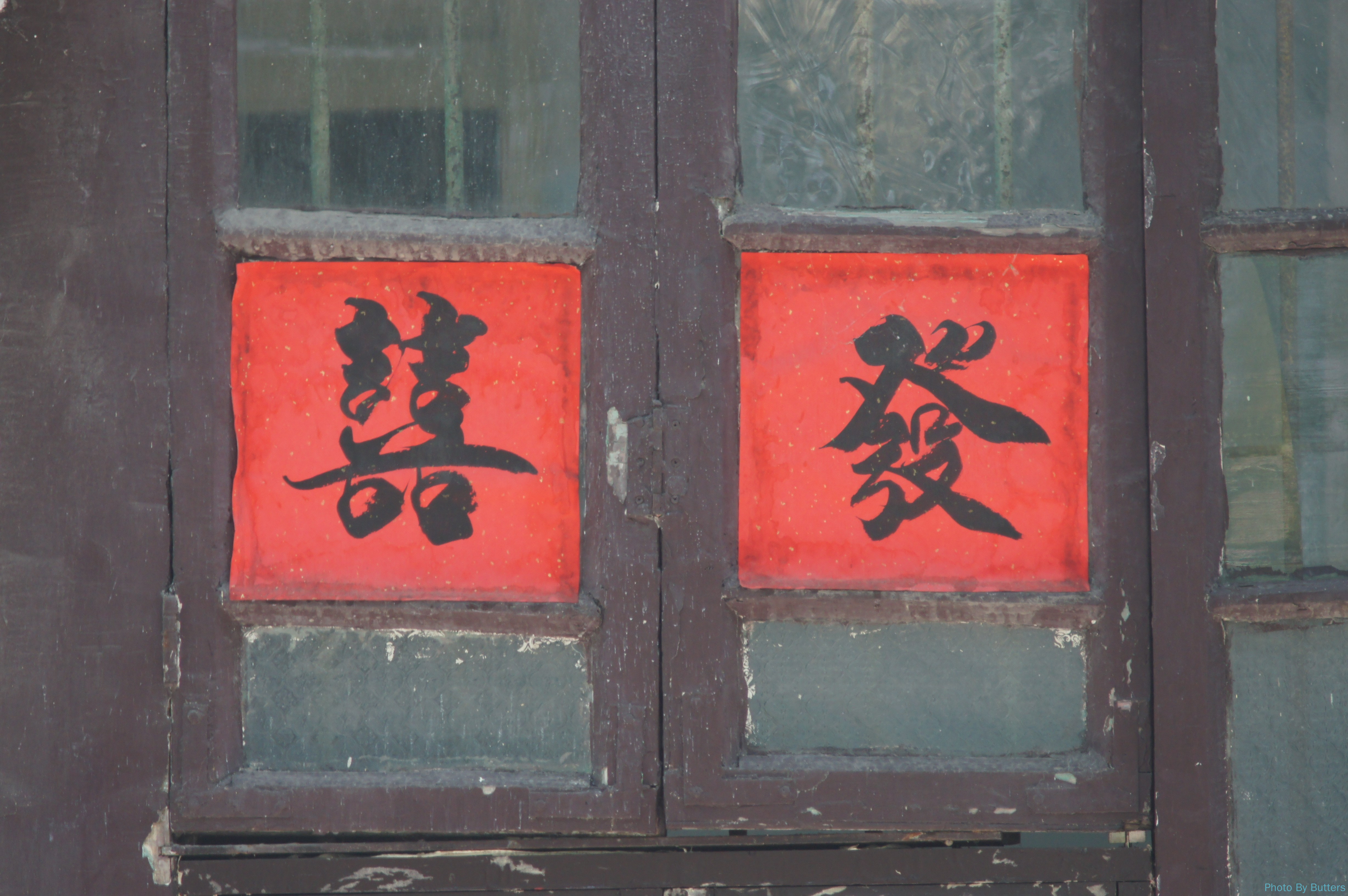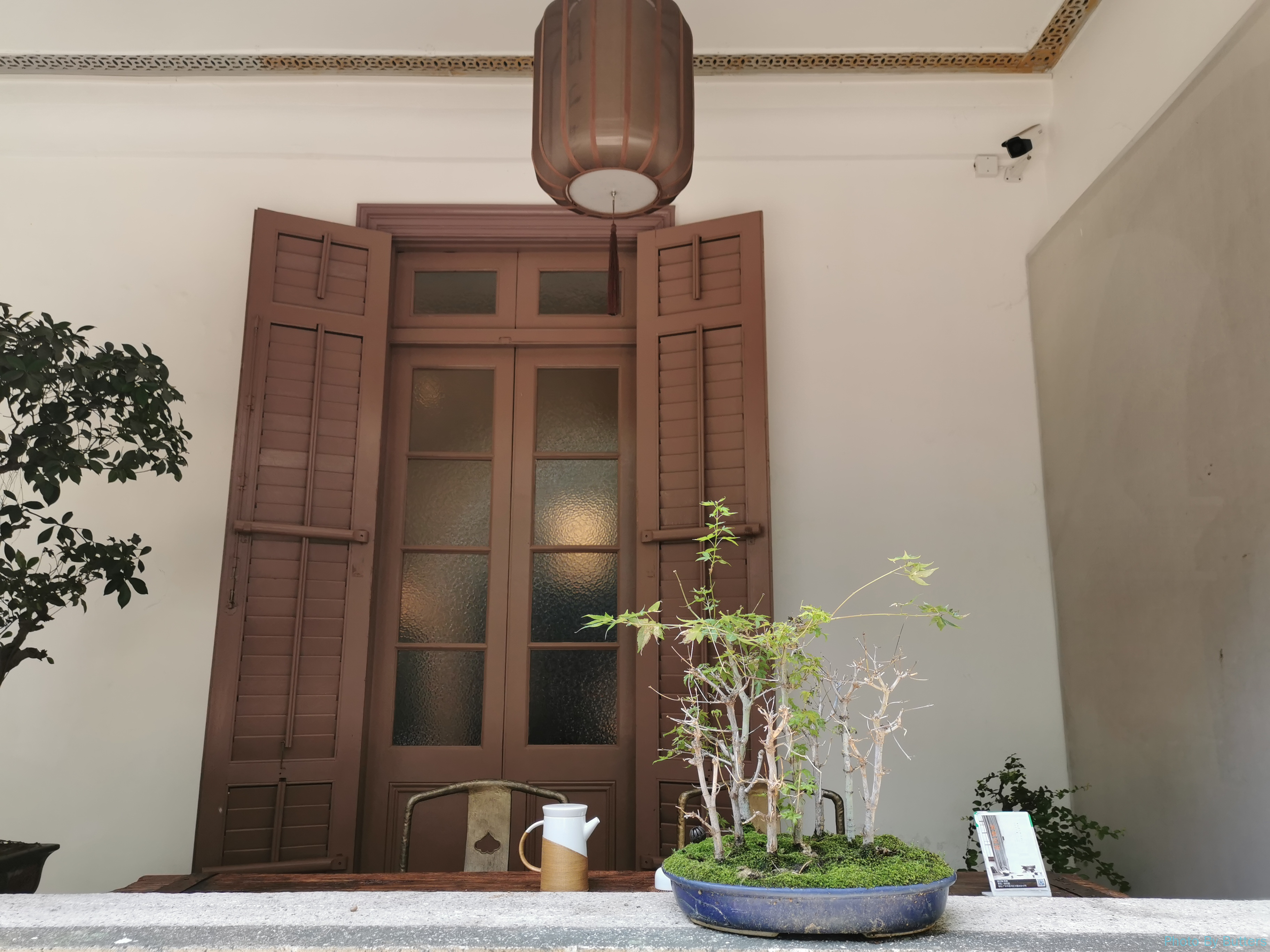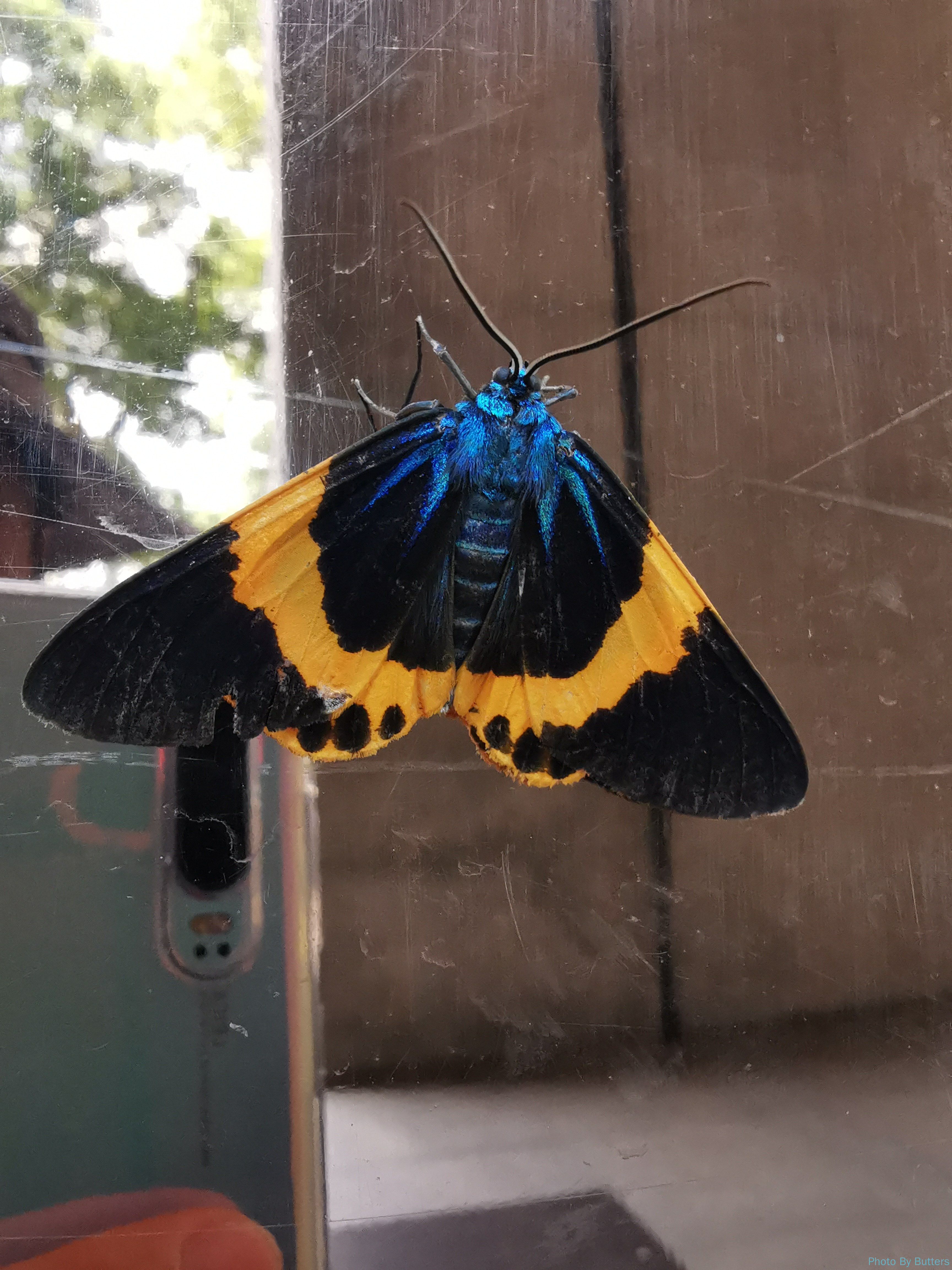 刚进入沙面,看到一只大蝴蝶落在墙上。拍了几张照片它突然飞走了,只剩下好奇的路人的倒影。