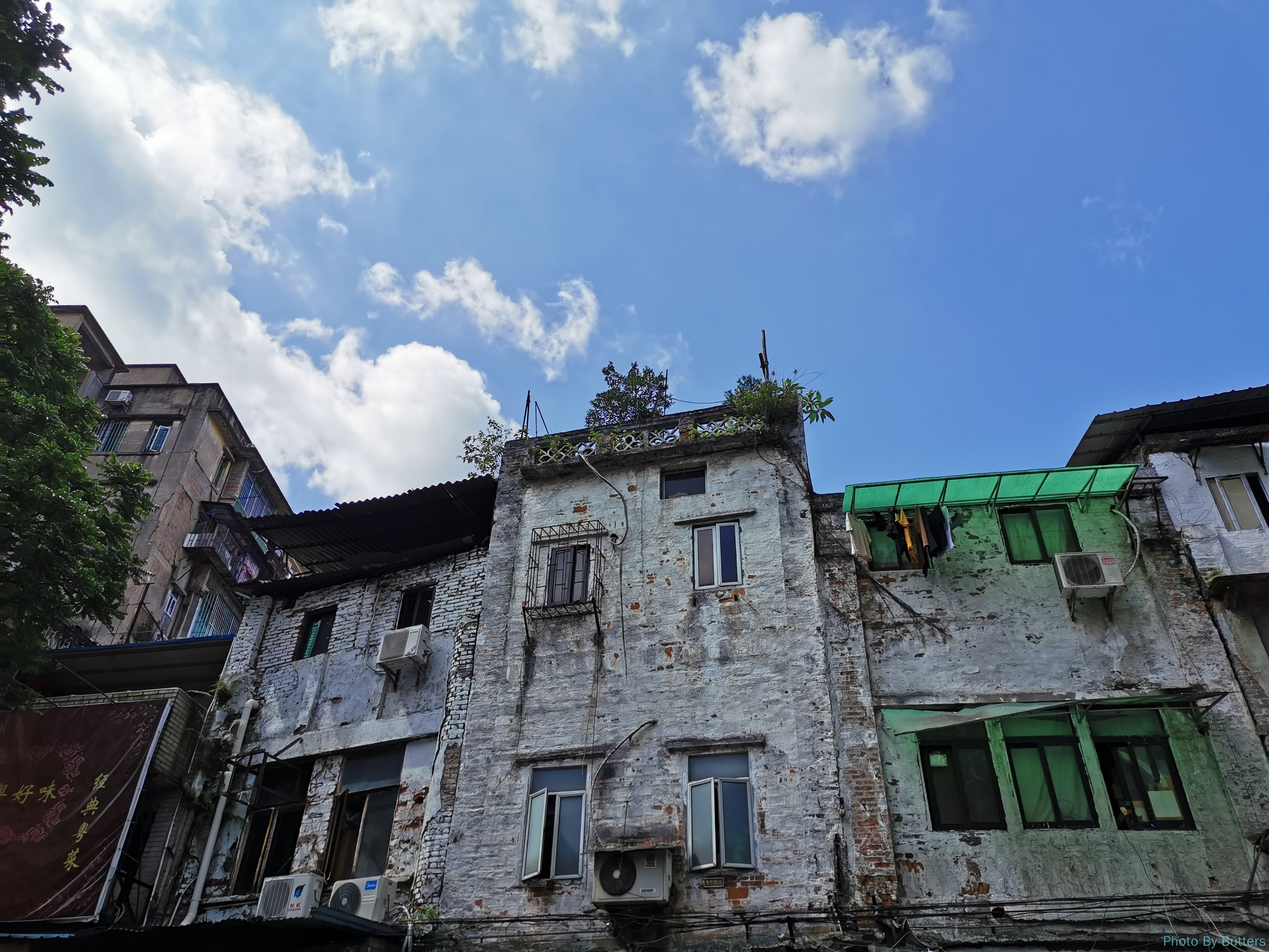 在广州能看到很多古老的房子,大多仍有人住。广州少年儿童图书馆,尤其是它的窗户,十分有小时候的学校和机关单位的感觉。小巷子里的居民楼形态各异,我也分不清这是广东原始的风格还是受西方影响的风格。