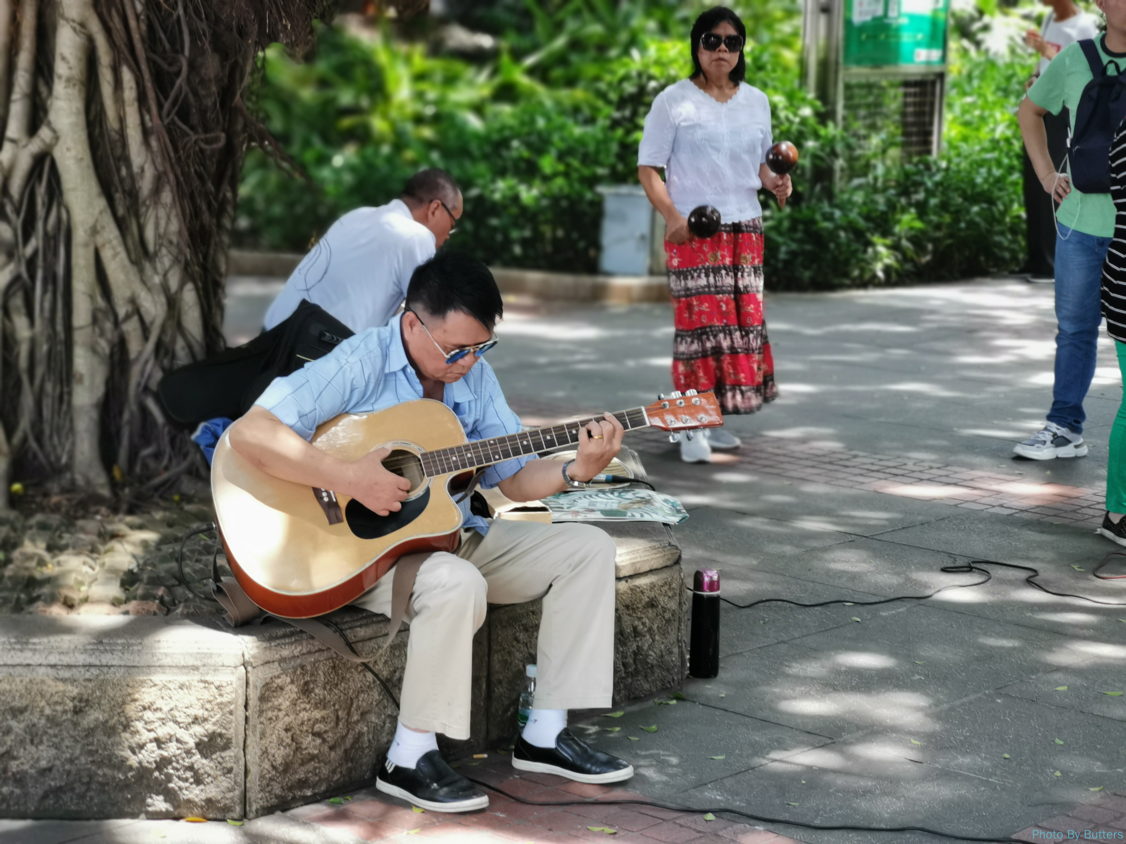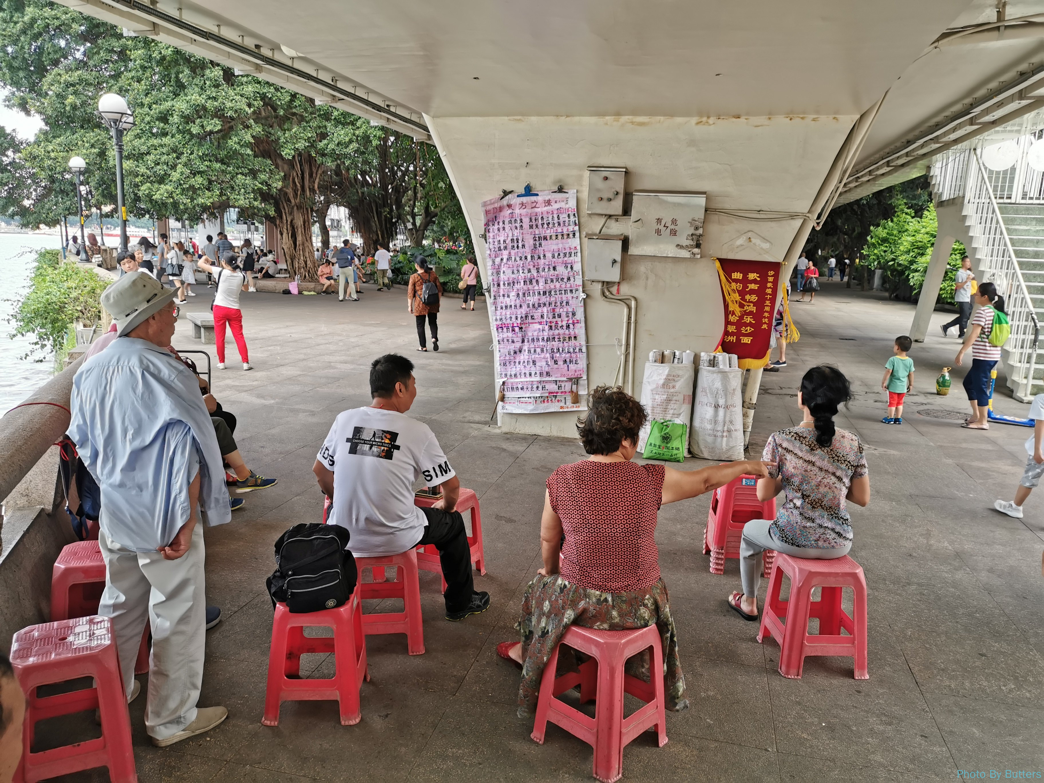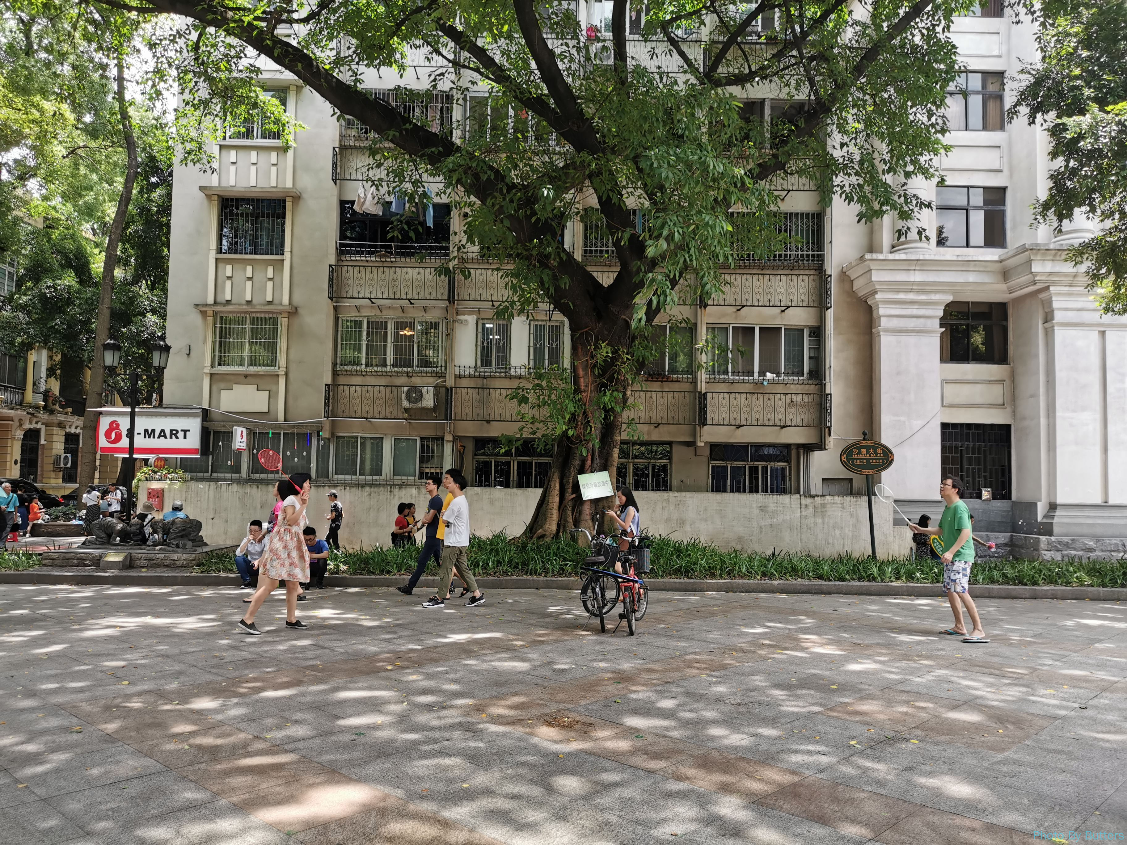 与上海不同,广州的租界没有成为高大上的城市标志,而成了市民消遣的地方。虽然游人很多,但丝毫不影响本地人和岛上的居民的日常生活。岛上不仅有普通的居民楼,甚至还有两所学校。江边很多人在唱歌、练武,被西式建筑环绕的绿地中有人在慢跑健身,也有人在游人穿梭中打着羽毛球。