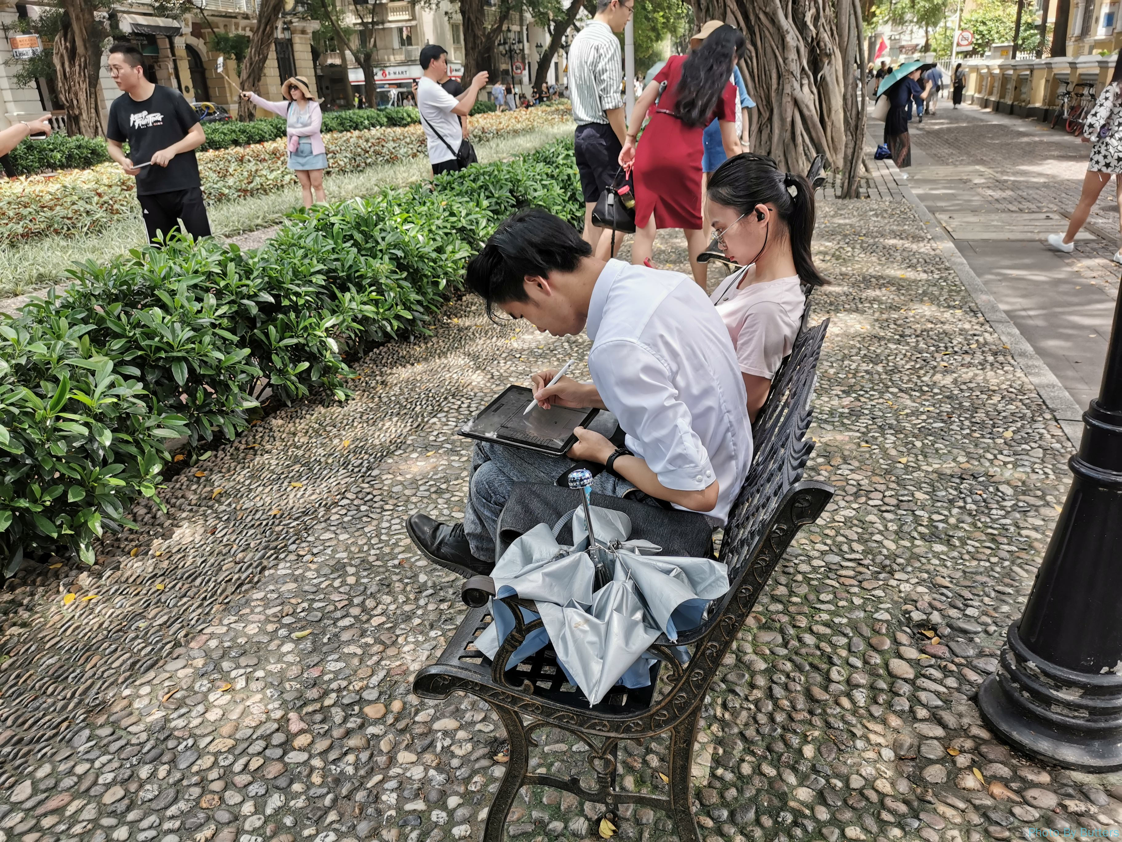 沙面不大,横向只有三条街。边缘一圈比较安静,几乎没什么人,中心区域人比较多,尤其是在教堂附近。岛上很多有趣的雕塑散布在各个角落。