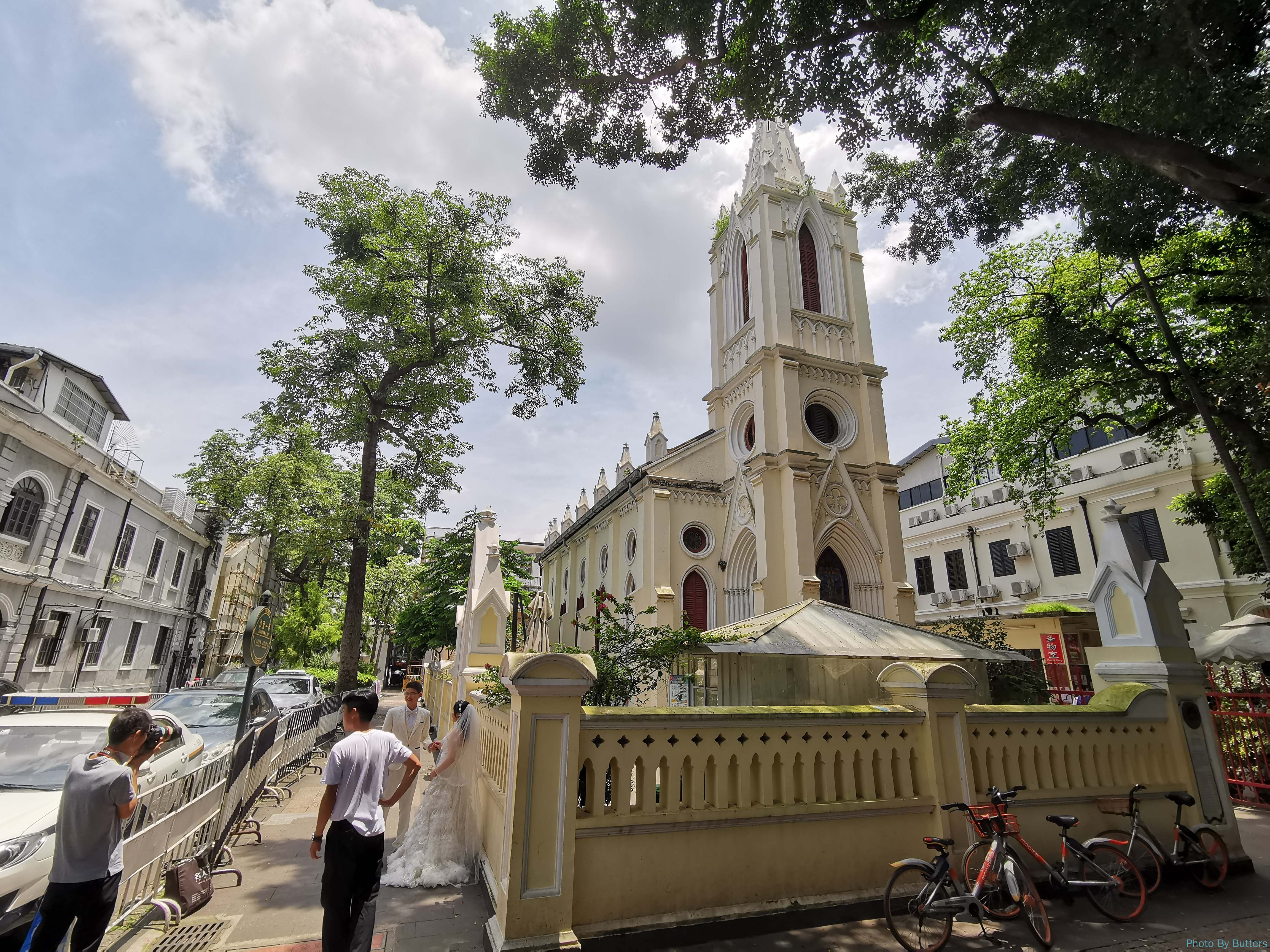 西式建筑的地方,必然会有很多来拍婚纱照的新人。
