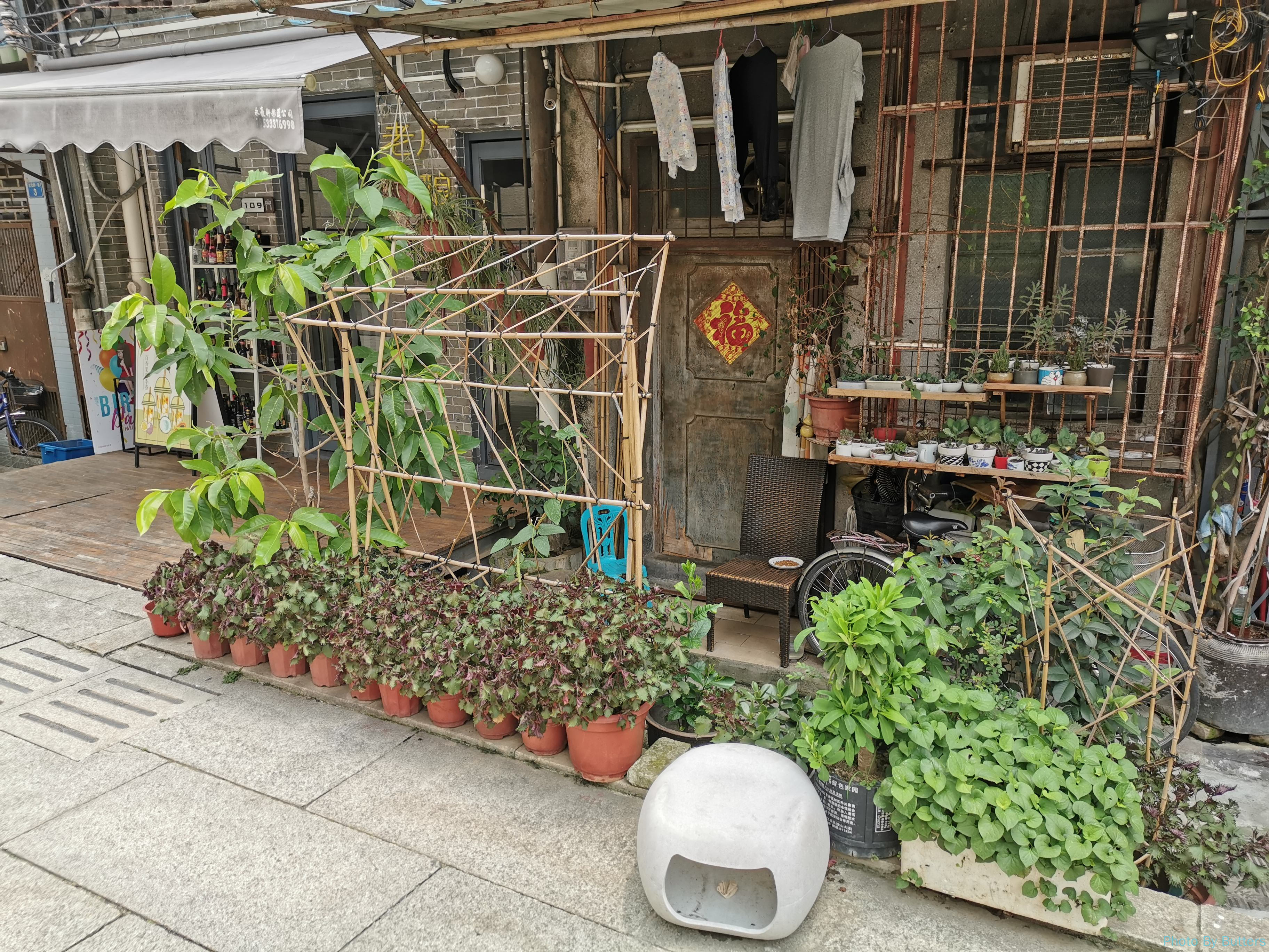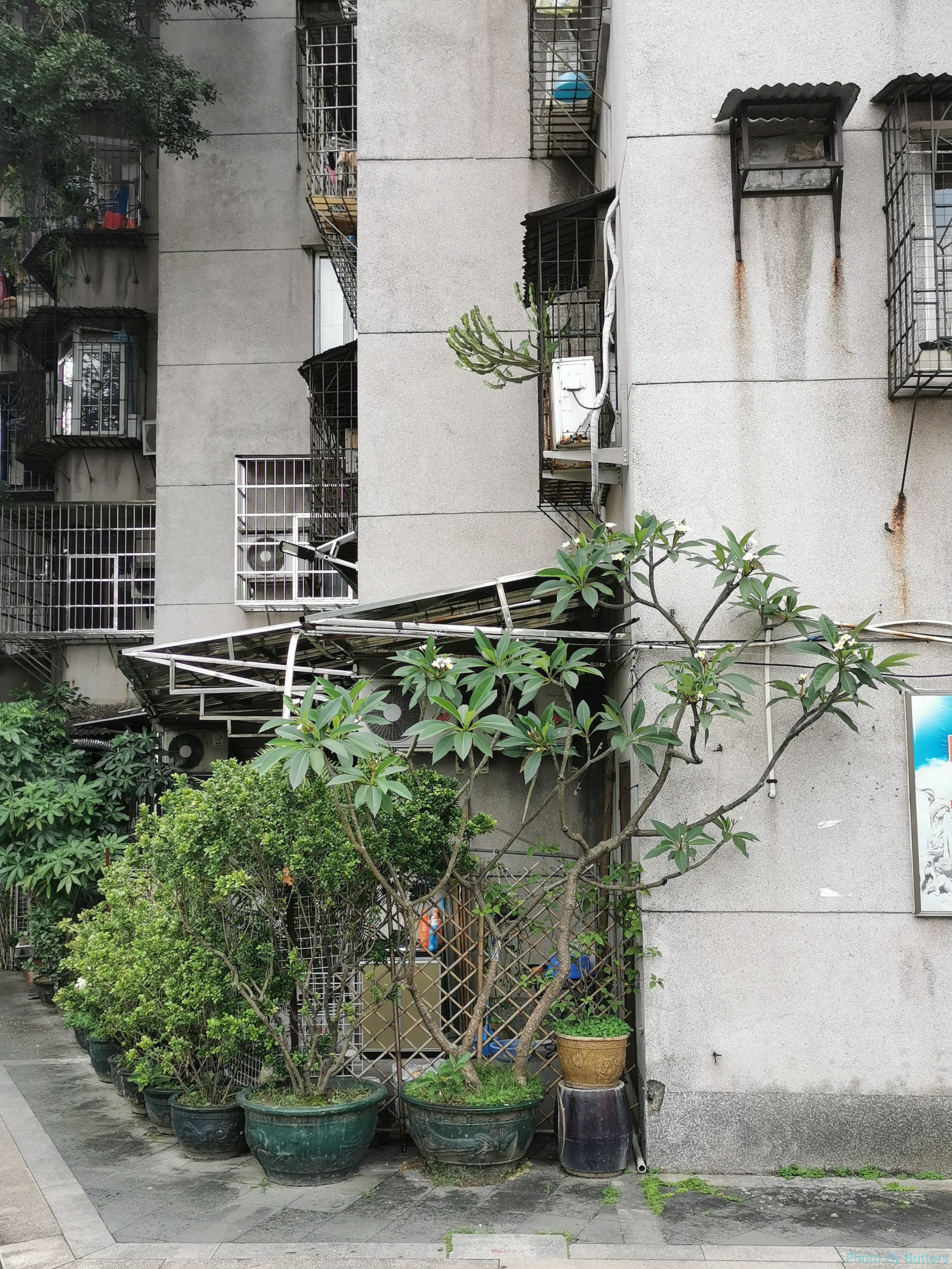 看得出广州人喜欢养花,即使是看起来破旧的房子,也会在门前或阳台上摆满了花。有些看似没有人打理的植物,也长得非常夸张。