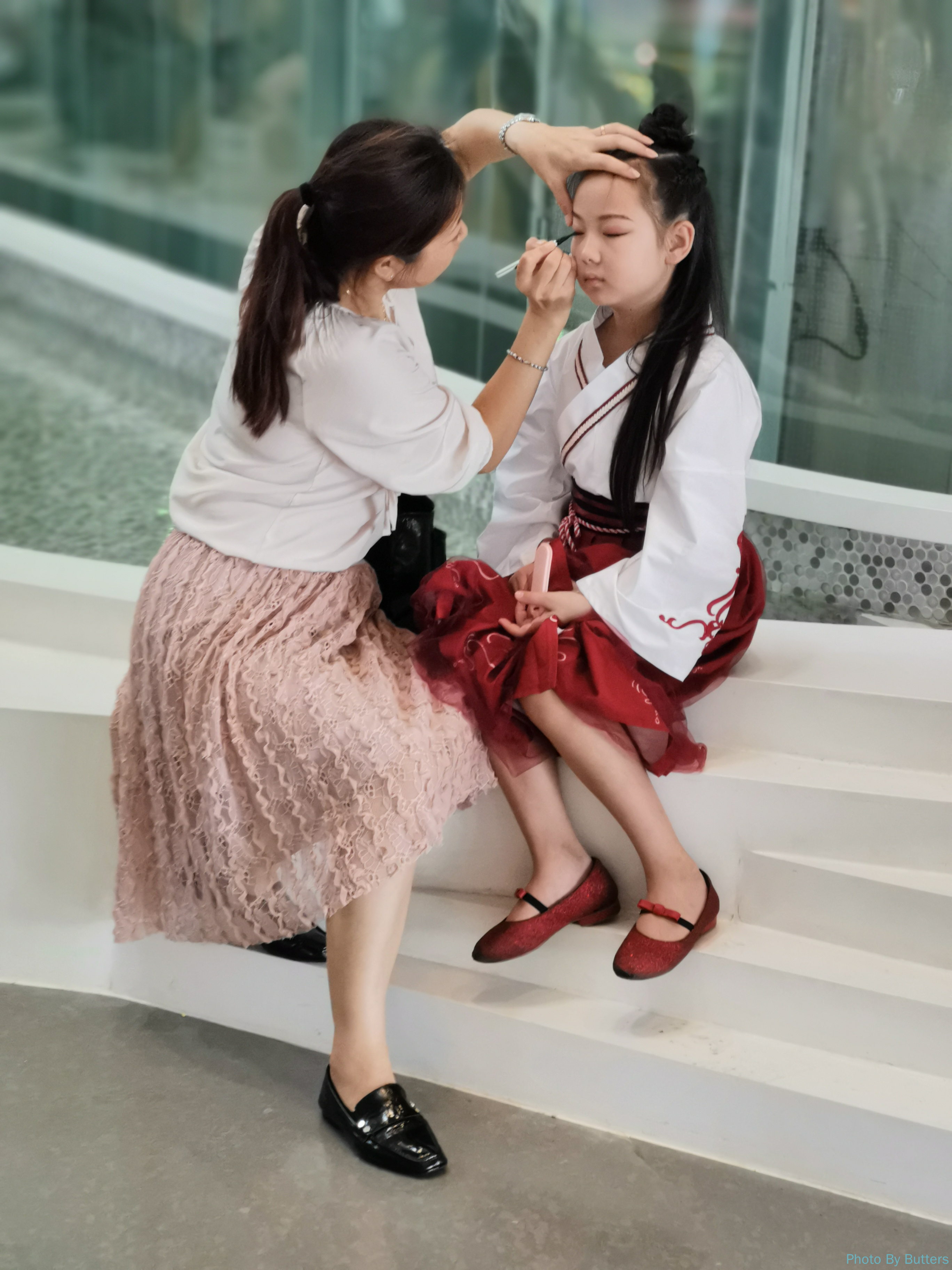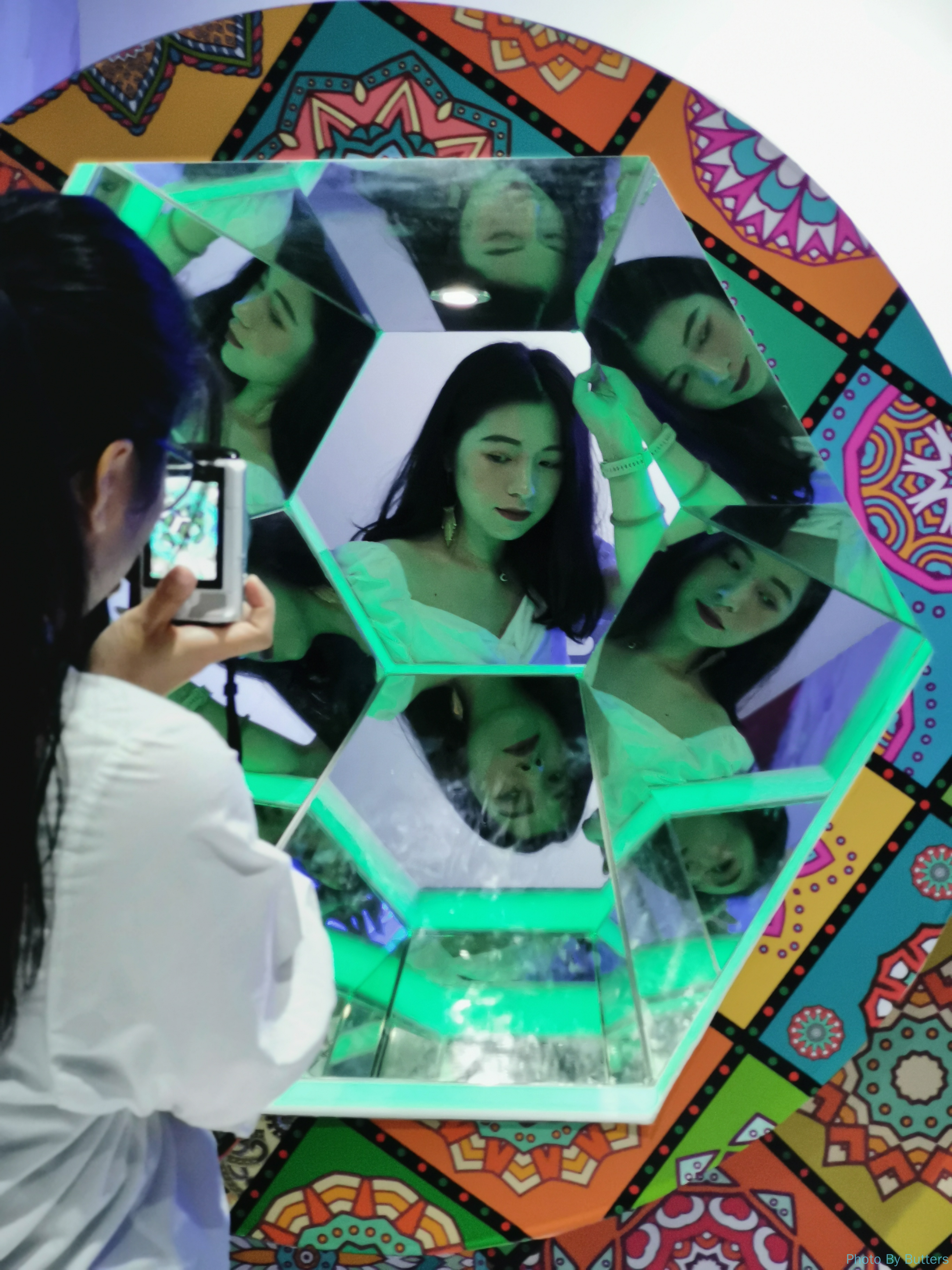 露天层有很多人来拍照,有些是成熟的网红团队,带着摄影师和化妆师,带着一箱子东西;也有类似三里屯那种见到好看的就追着拍的。