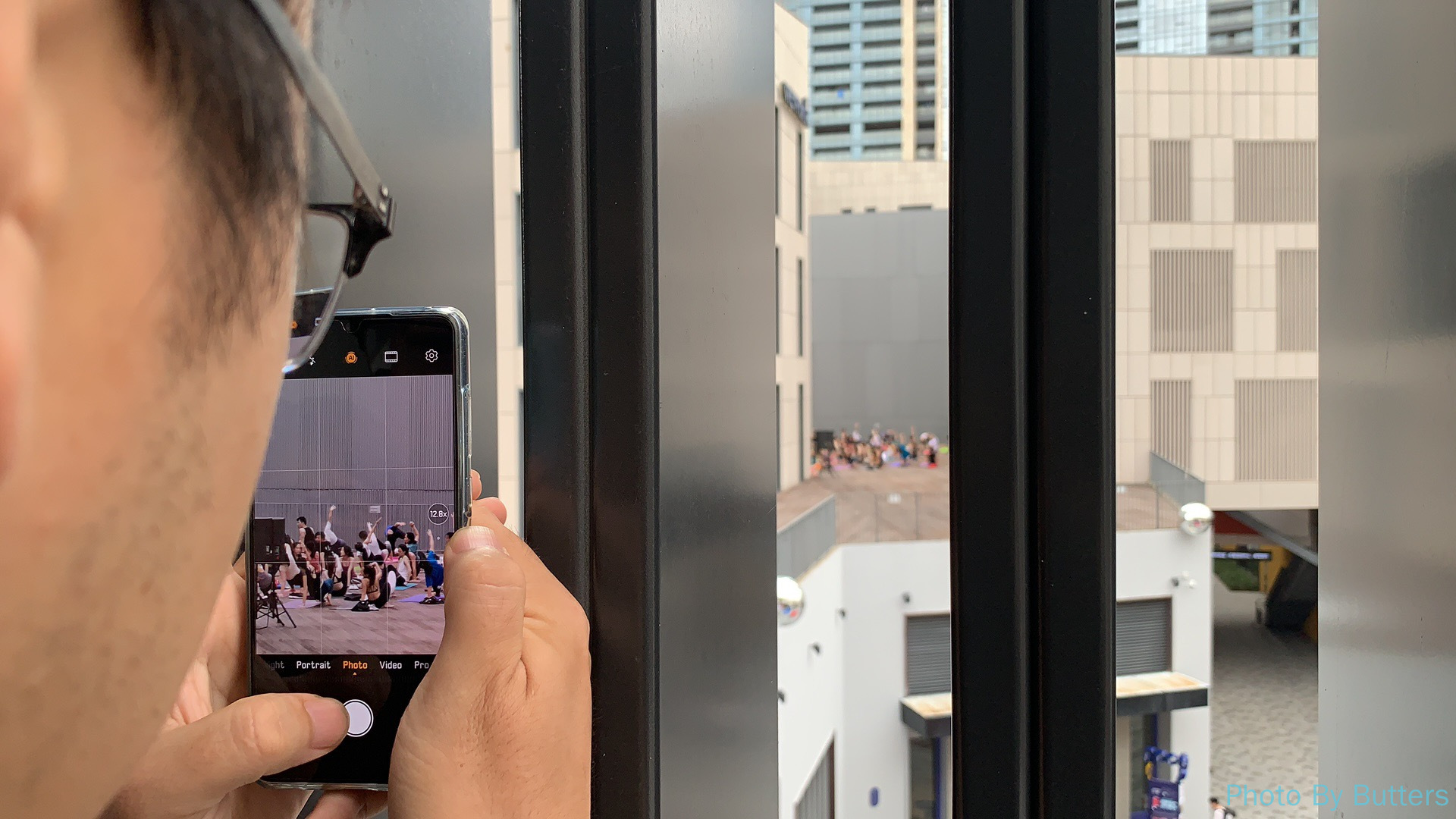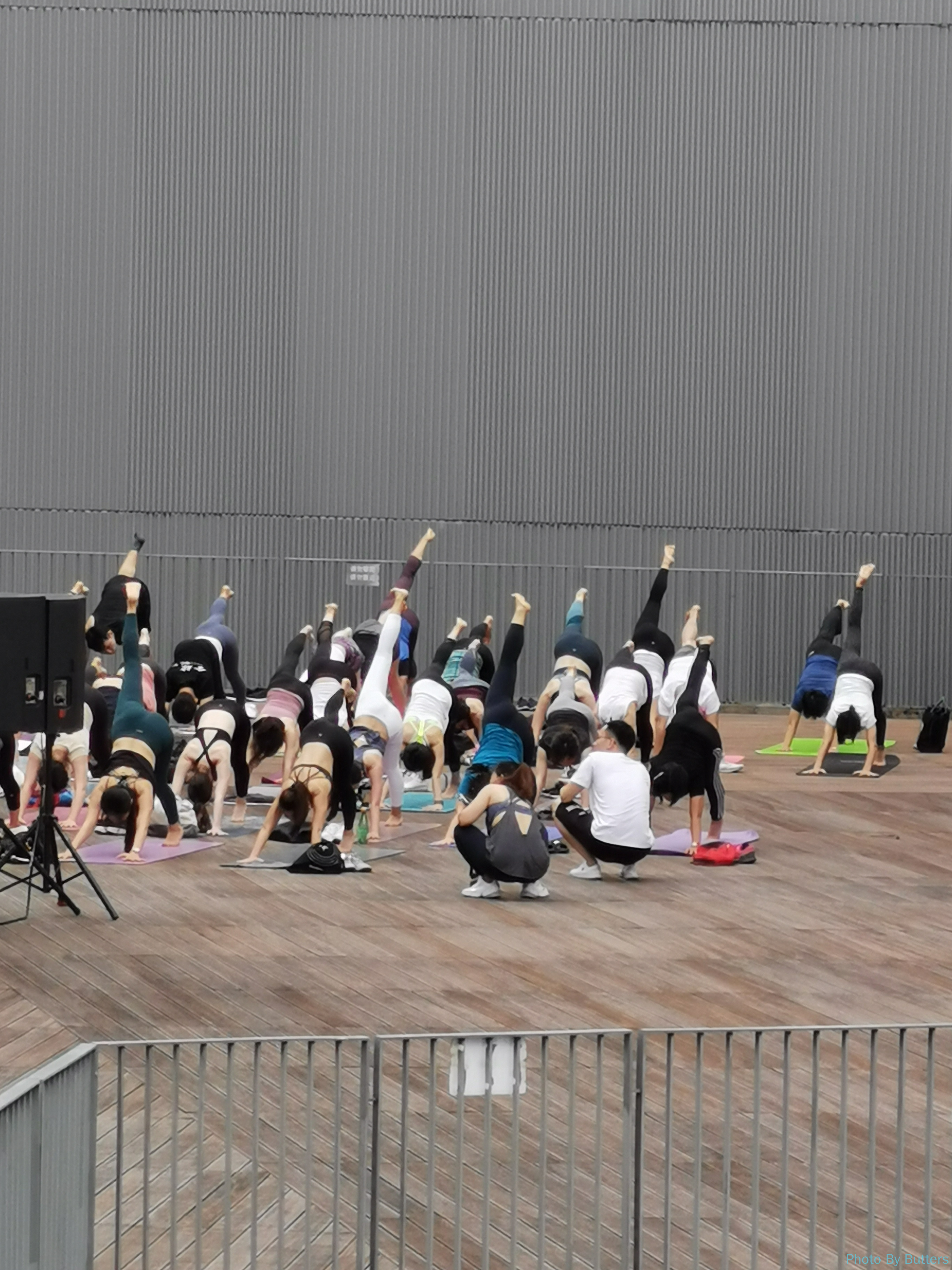 WeWork 广场上很多人在做瑜伽。感谢朋友的幕后照片,展现了 P30 的长焦能力。