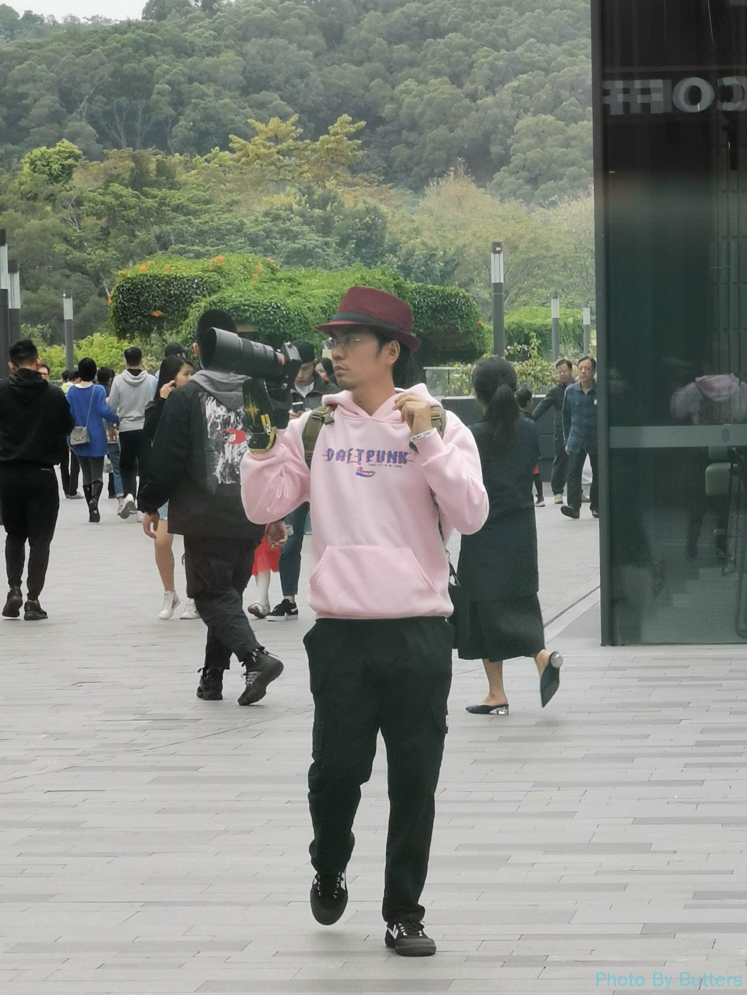 深业上城的街拍摄影师的幕后工作场景。很想带着相机,和街拍法师拍路人的方式一样,追到街拍法师的正面去拍照,不知道他们会有什么反应。