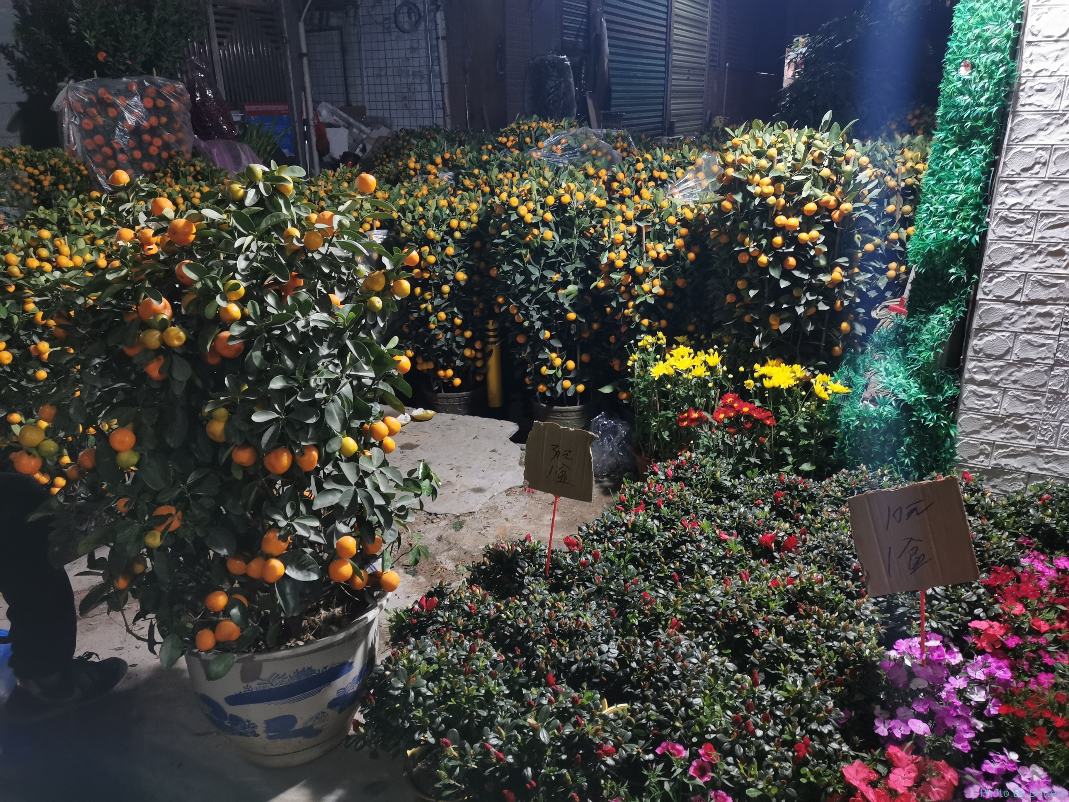 广东人过年必备橘子树,每家公司门口都会摆一两盆,年货市场上有一半都是卖橘子树的摊位。