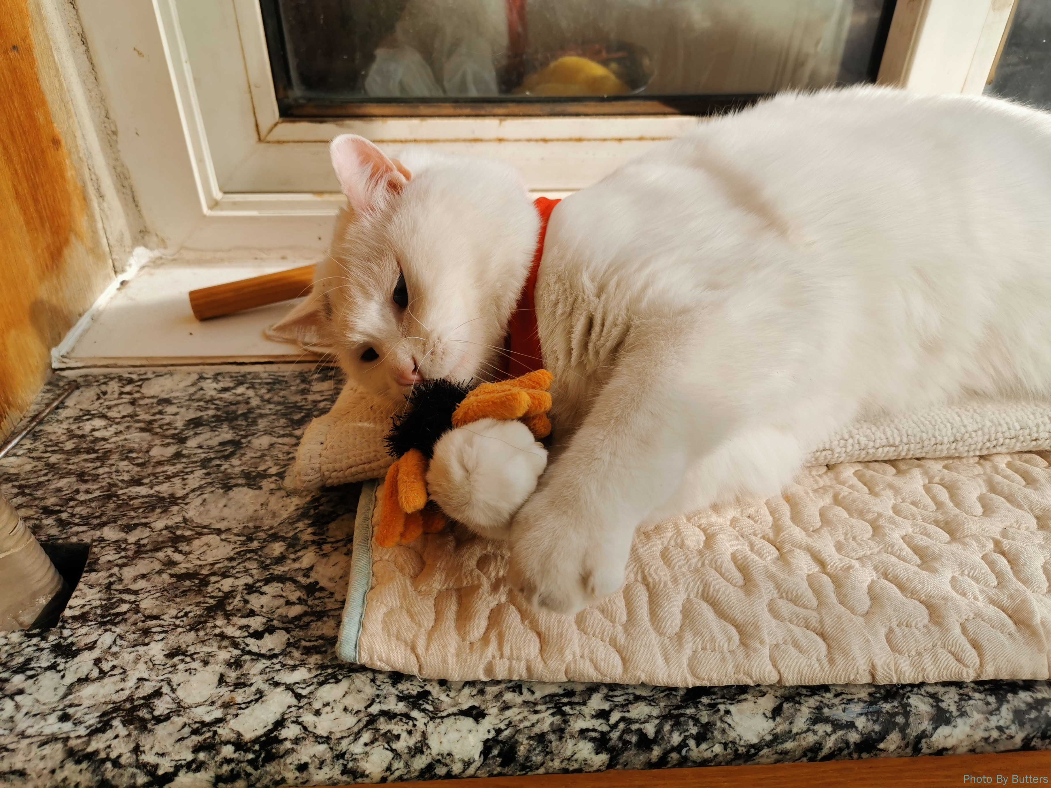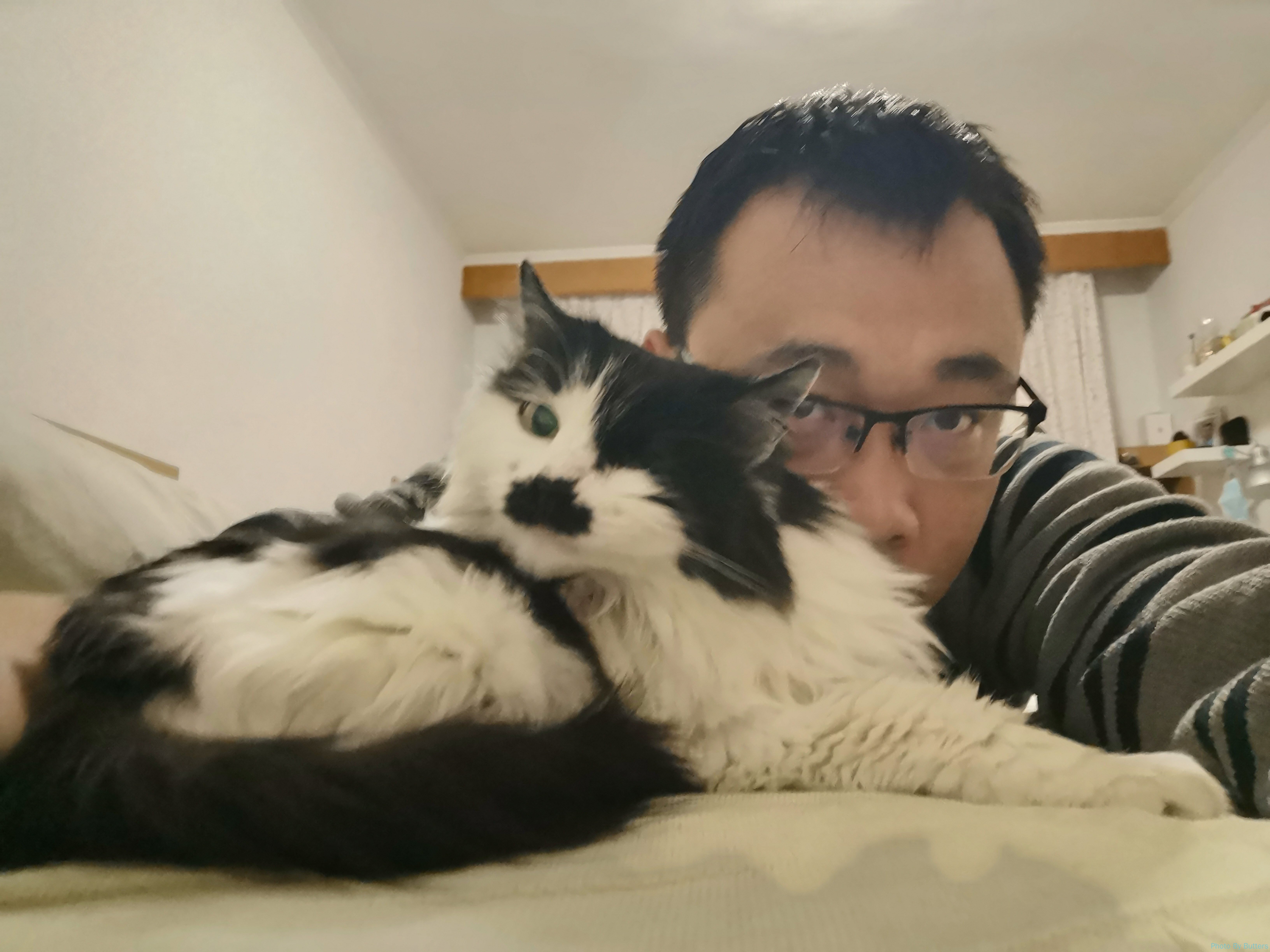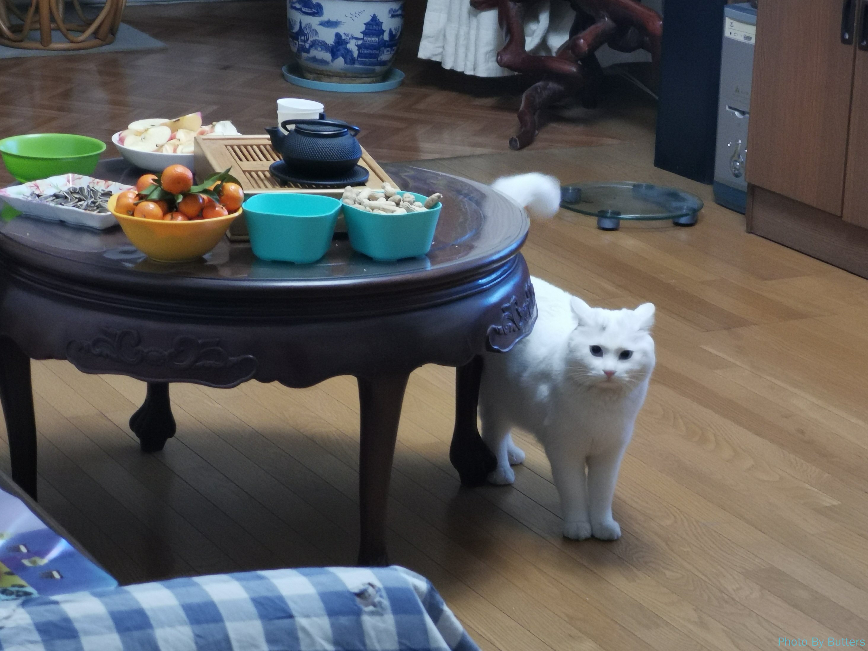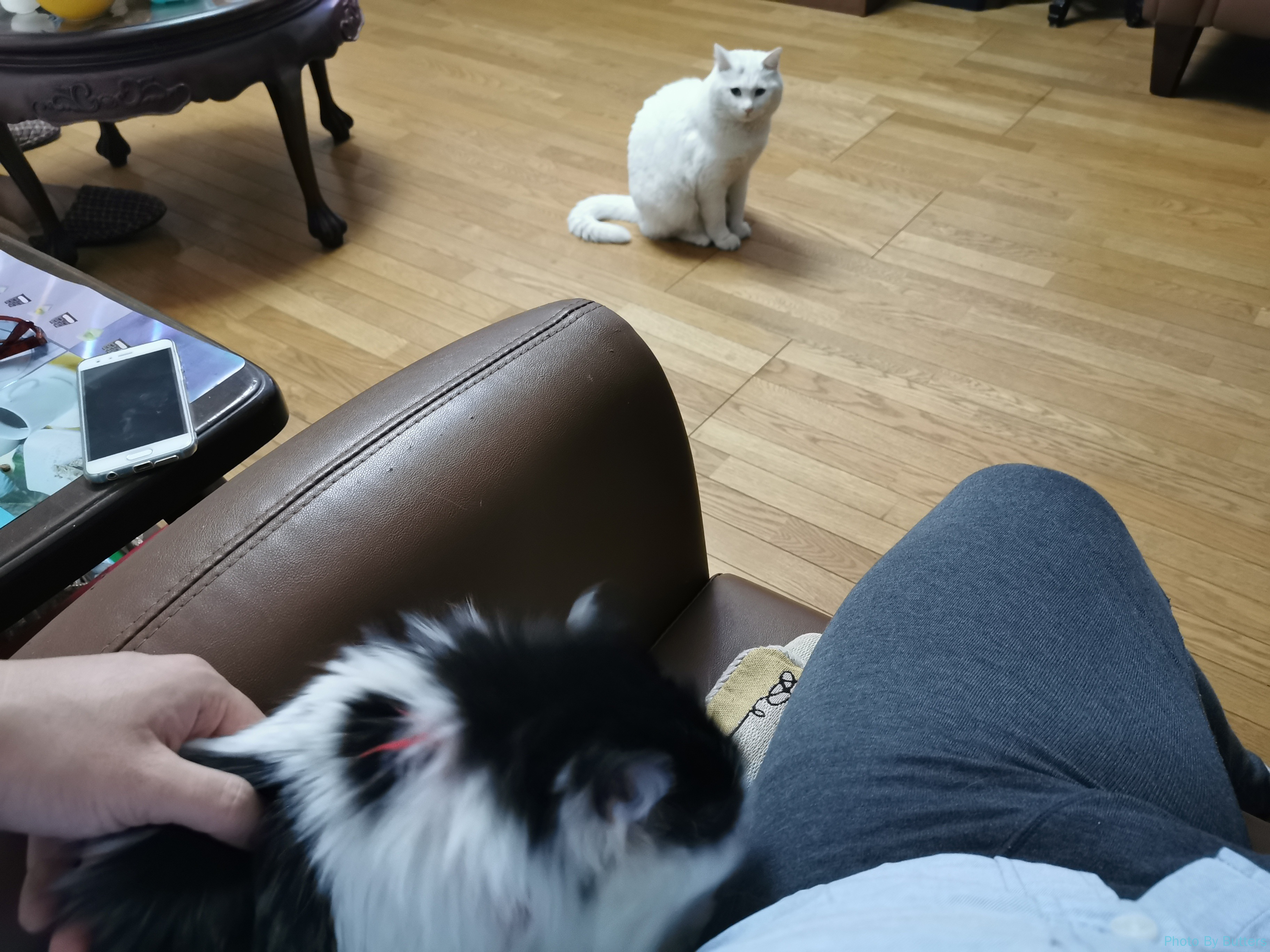Eva 仍然记得我,没有表现出见到生人的那种躲藏意图。有时为了躲避白猫的骚扰,也会到我旁边避风头。