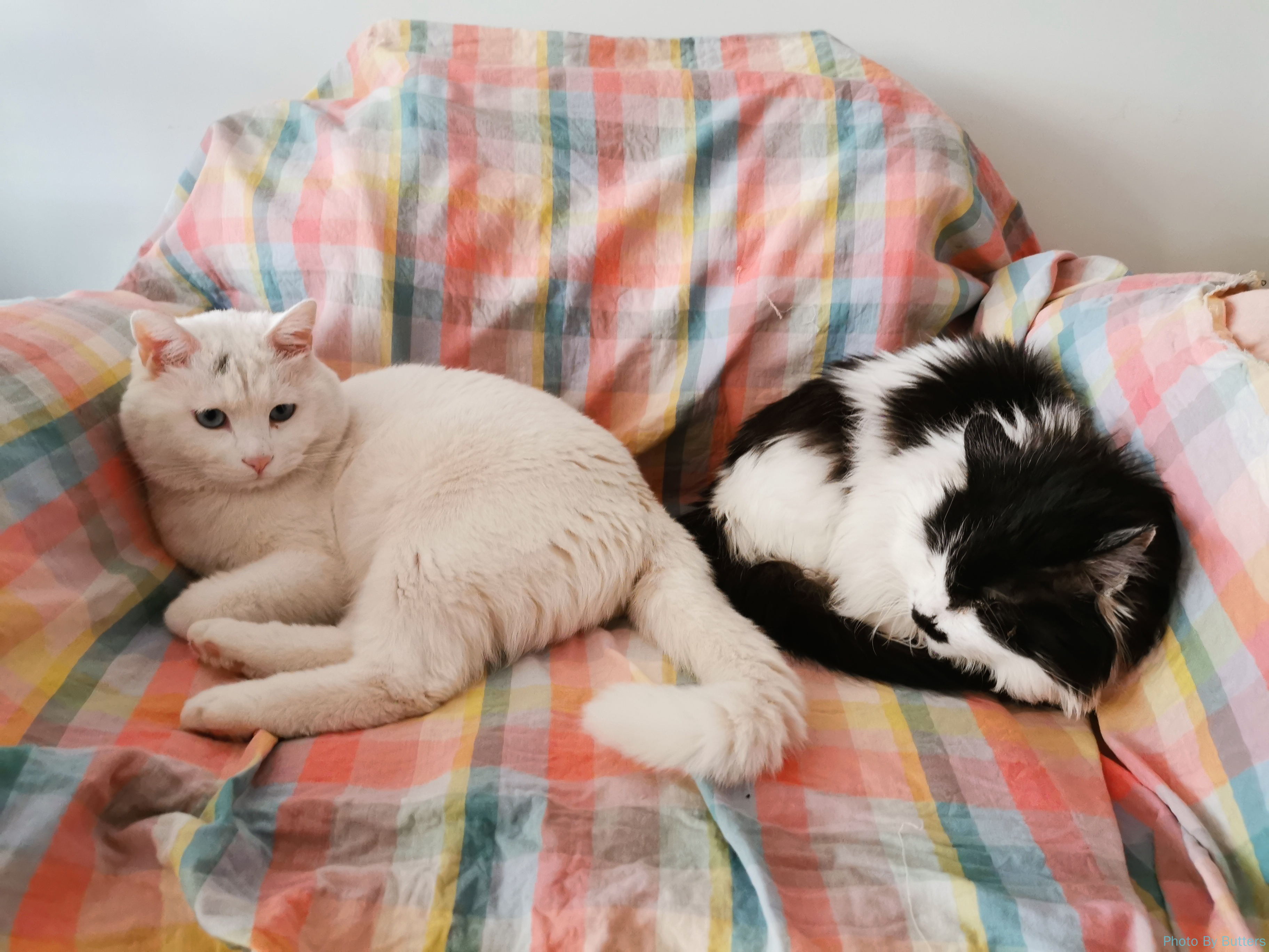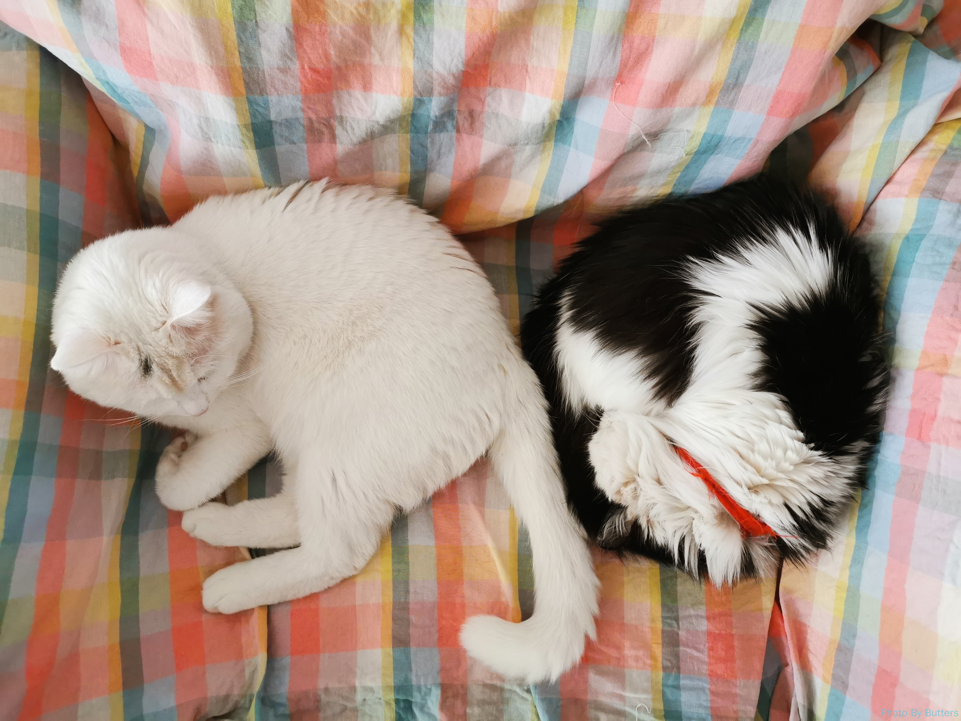 Eva 还是不喜欢和白猫互动,有时会互相闻一下,然后立即躲开。而面对白猫的骚扰,Eva 也开始会主动还击了,而不总是躲避。很少见到他们想这样挨在一起休息。