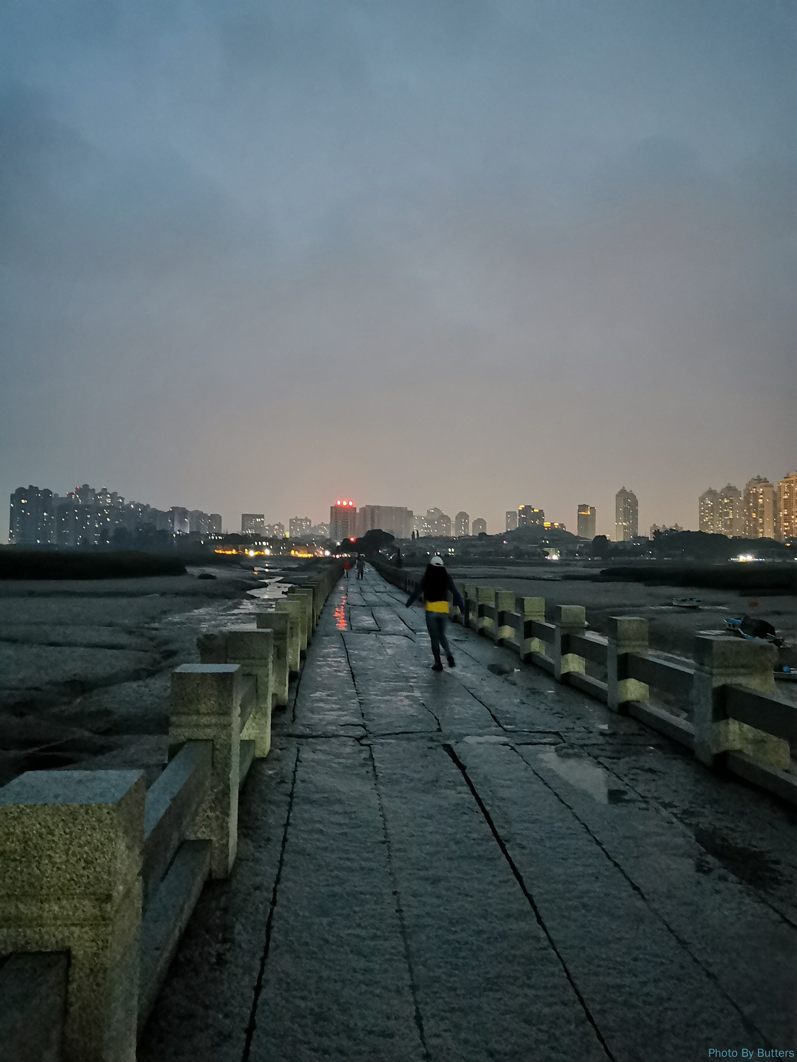 我们到桥头的时候,卖小吃的正在收摊。阴冷的傍晚,风很大,没有人。泥滩里有人还在工作,照看种的蚝、螃蟹笼、或是收拾渔船。我们走到桥对面的村子里转了一圈,就返回了。这桥没有任何改变,而且几乎我每次来都是落潮的时候。
