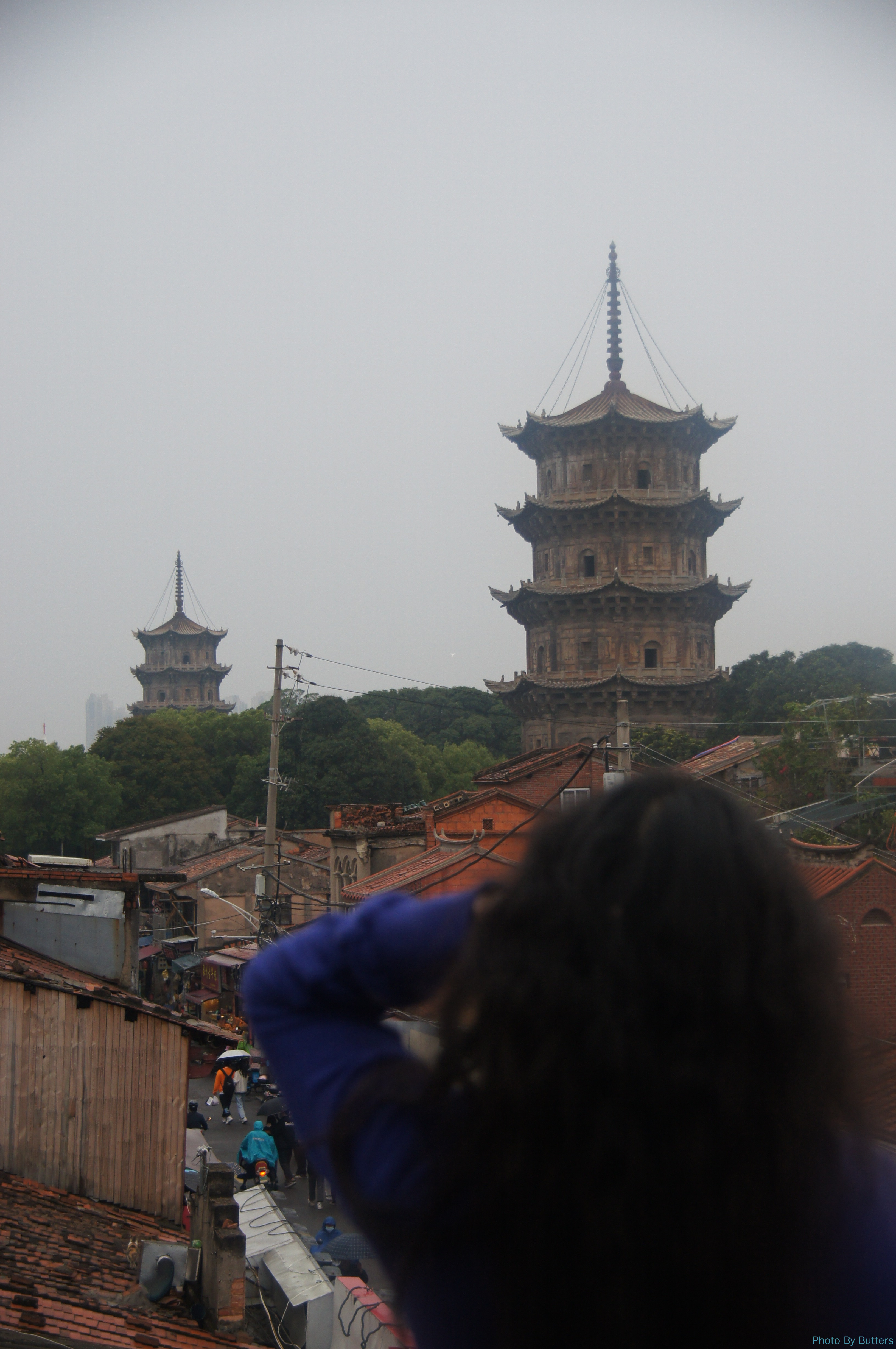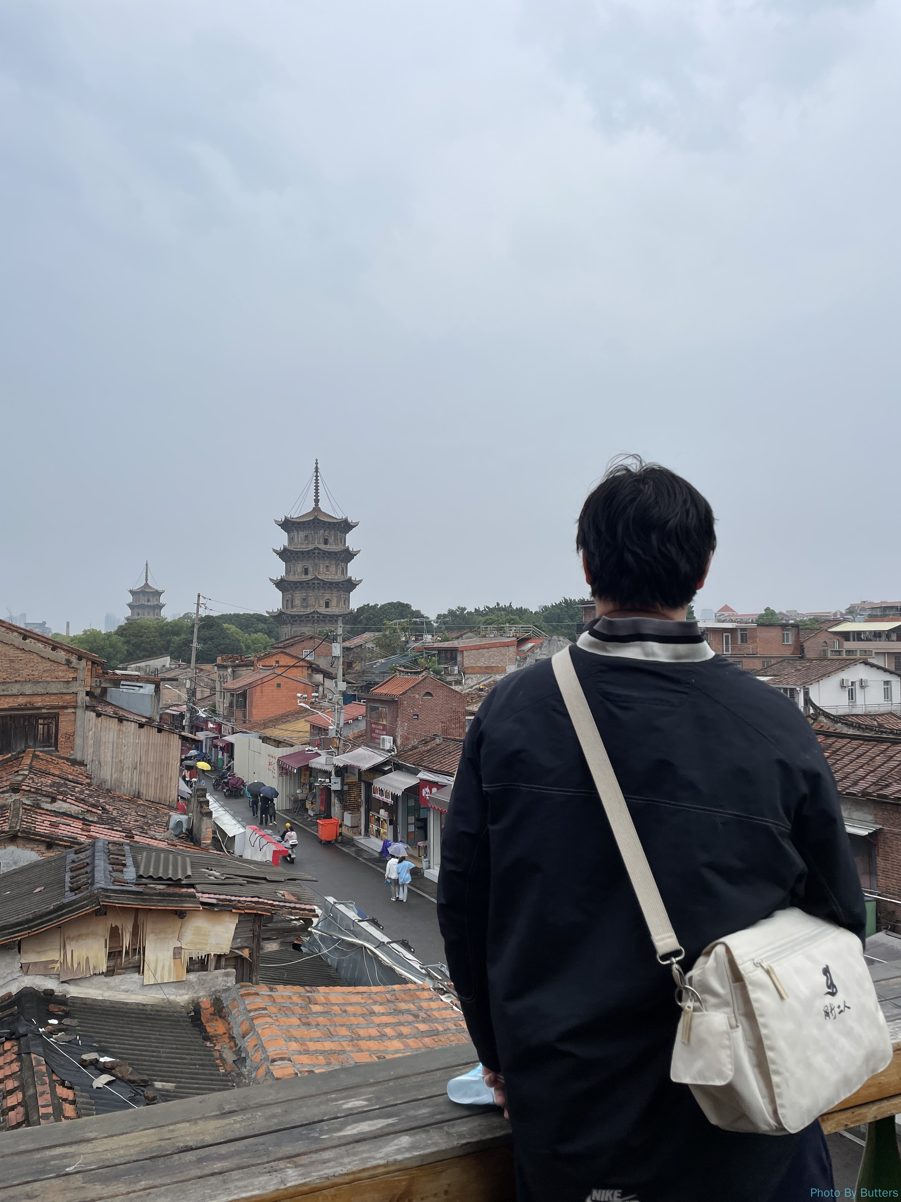 之前在网上看到一个很好看的双塔机位,从开元寺出来就一路寻找。游客中心的位置不错,但楼顶不开放。很幸运地找到了“有鲤咖啡”。雨后的西街看着非常干净,屋顶上鲜艳的红色和石塔古朴的砖色对比起来更加好看。露台上只剩我们两个人,看着从宋朝就立在这里的双塔,和几百年来人来人往西街。