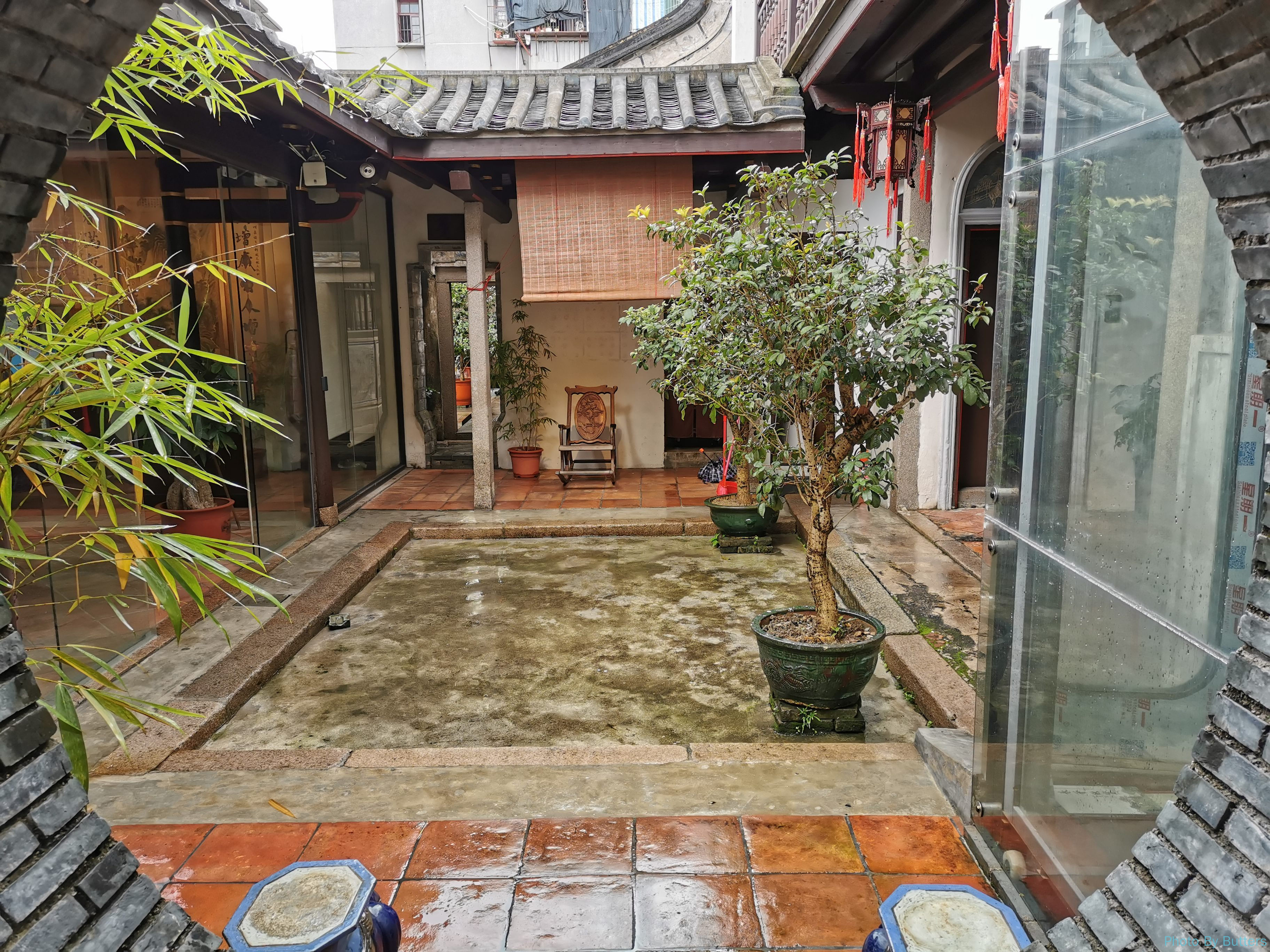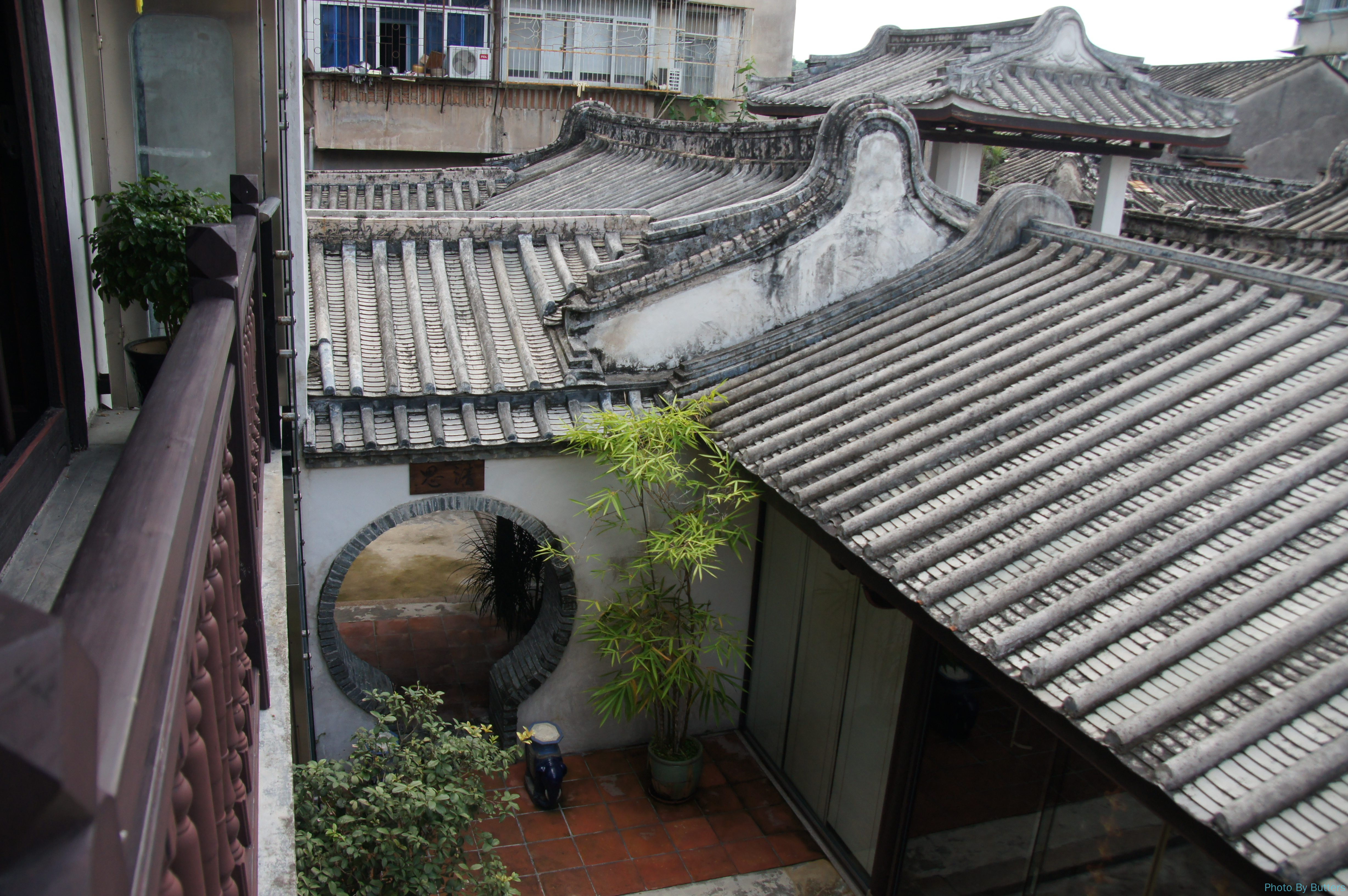 爬上二楼可以看到巷子附近一片古宅灰色的屋顶。古宅内部大概分成了左中右三个院子,人不多很安静。我们的房间不大,干净但有点潮湿。