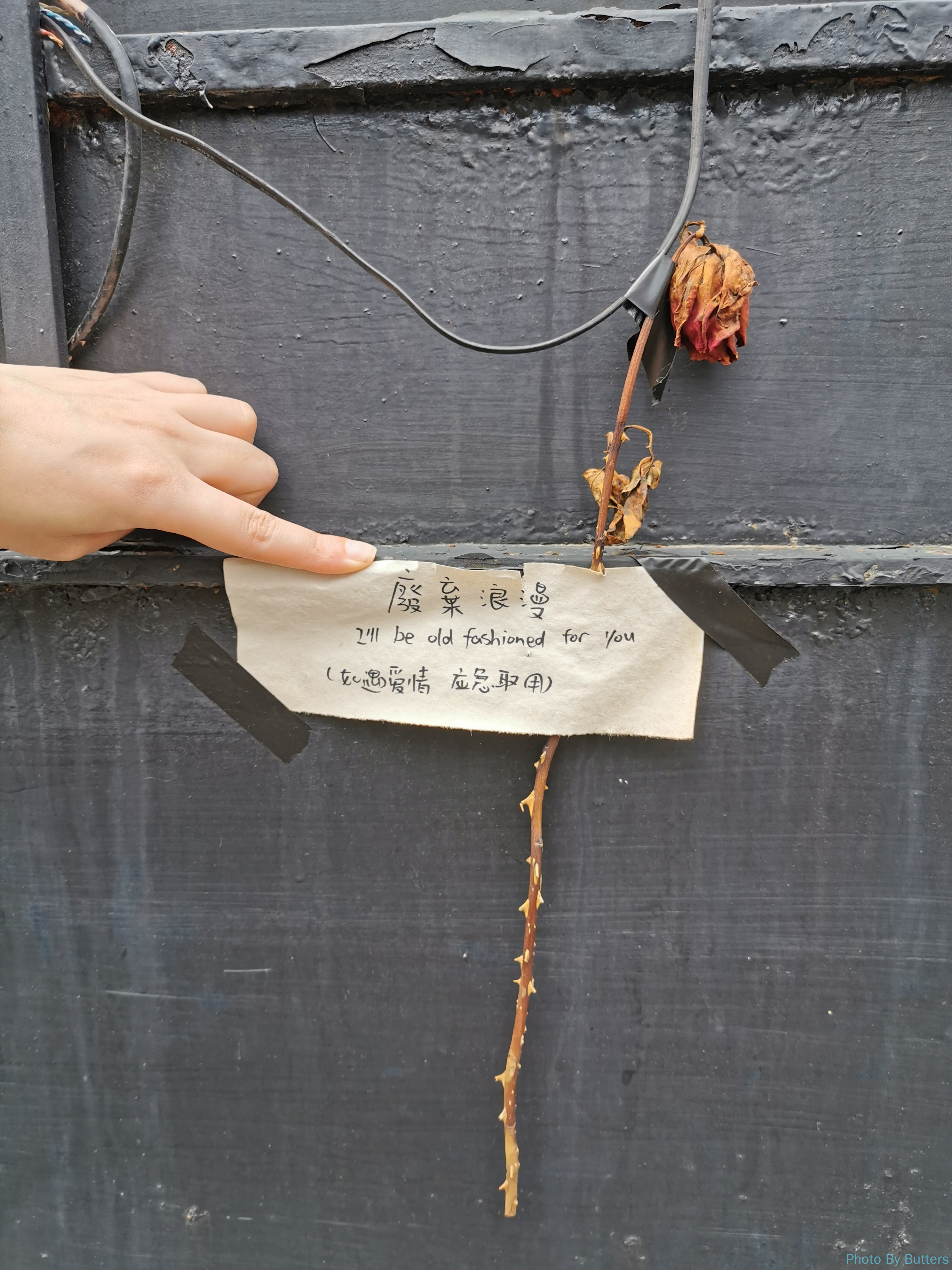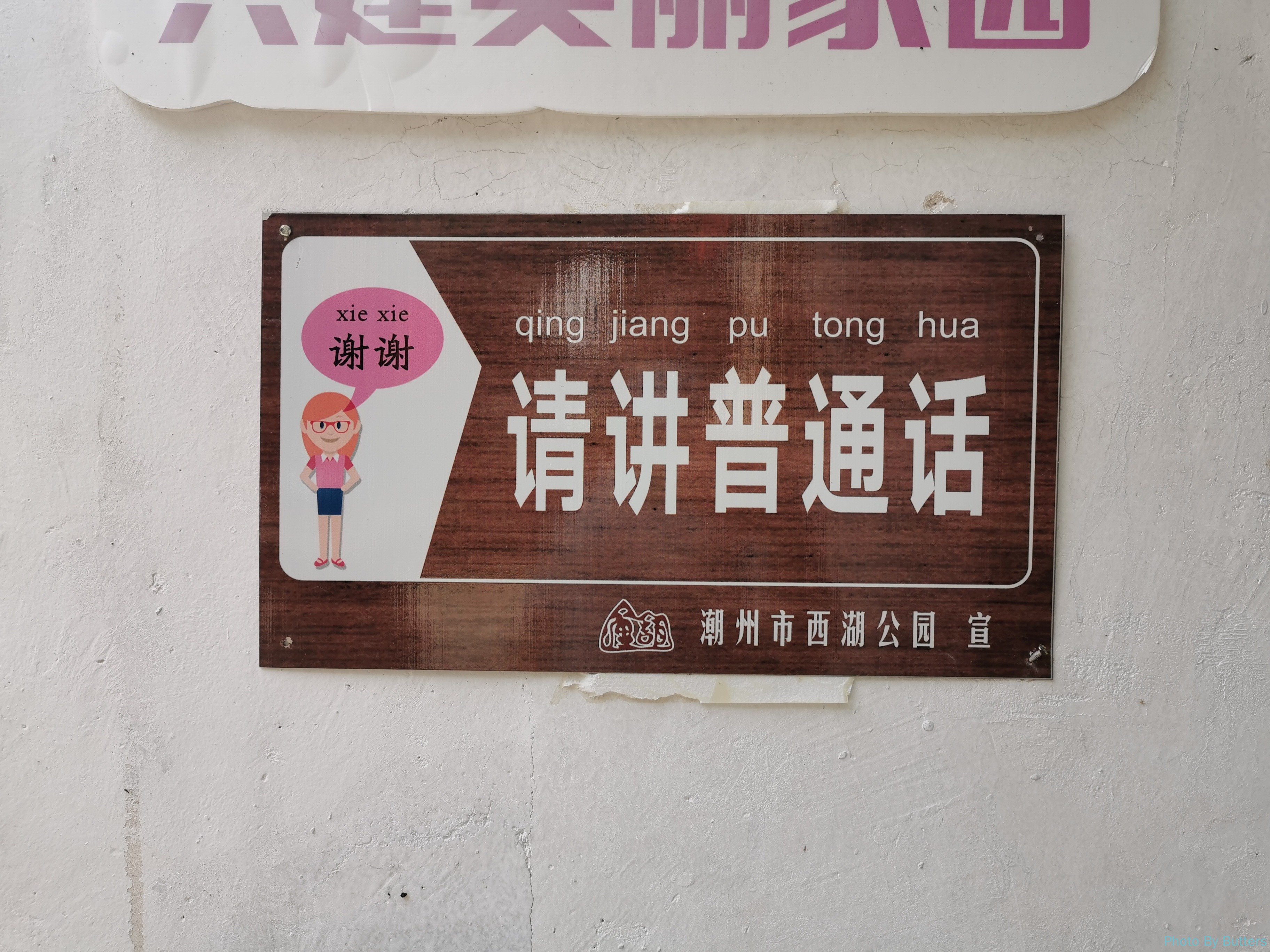 “永远革命”出现在很多的门上,我还是第一次看到过这个标语。在西湖涵碧楼里介绍潮州七日红的展览中看到了这个标语,也许是那时留下来的。