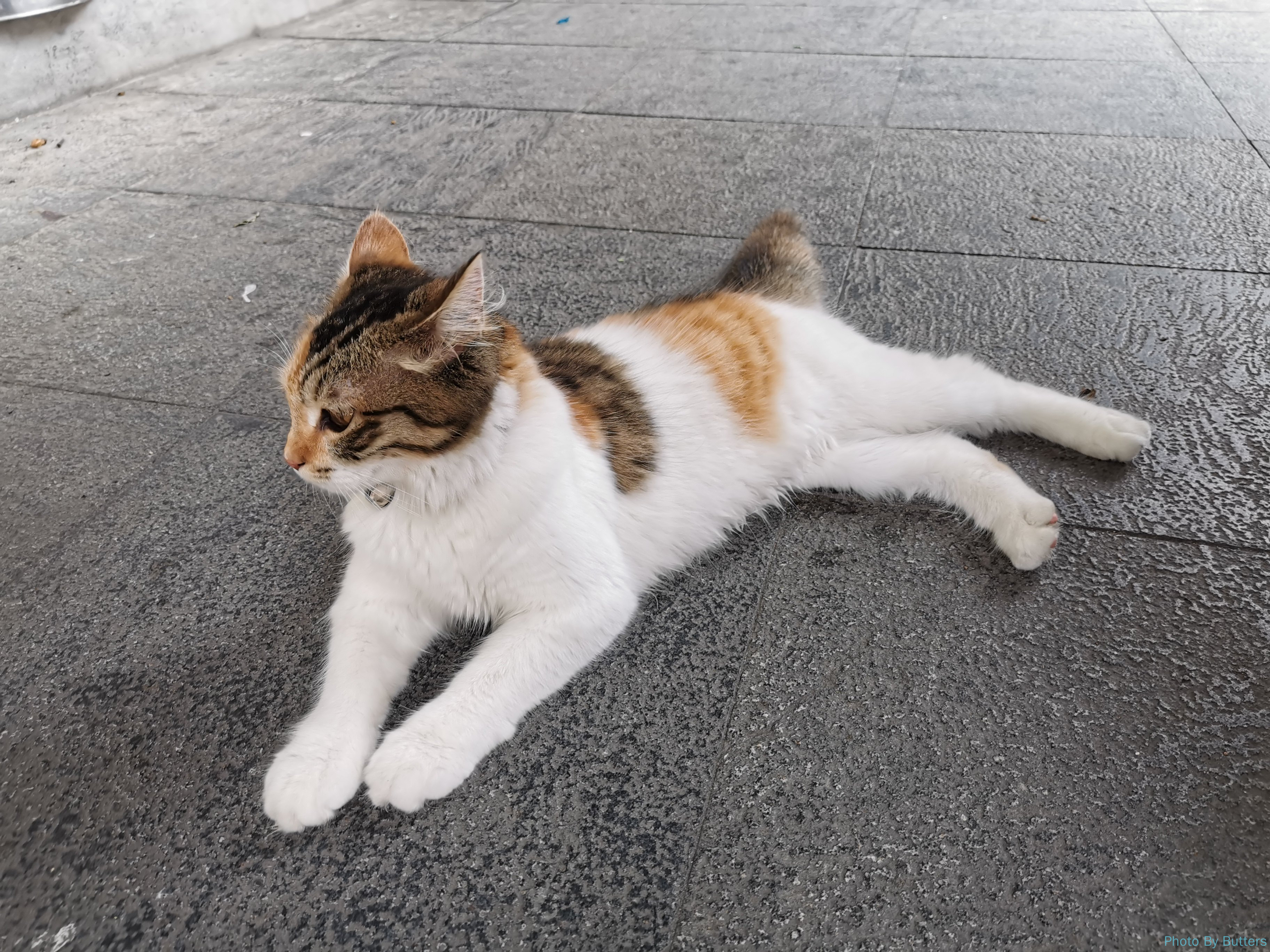 如果仔细寻找,大概一半的店铺里是有猫的。古城的猫要么是散养着,要么是像狗一样用绳子拴在门口。